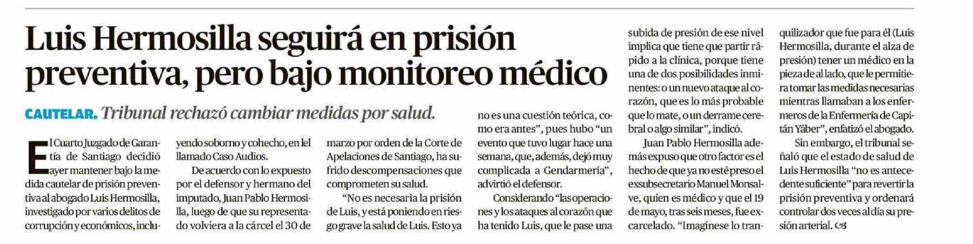 Luis Hermosilla seguirá en prisión preventiva, pero bajo monitoreo médico