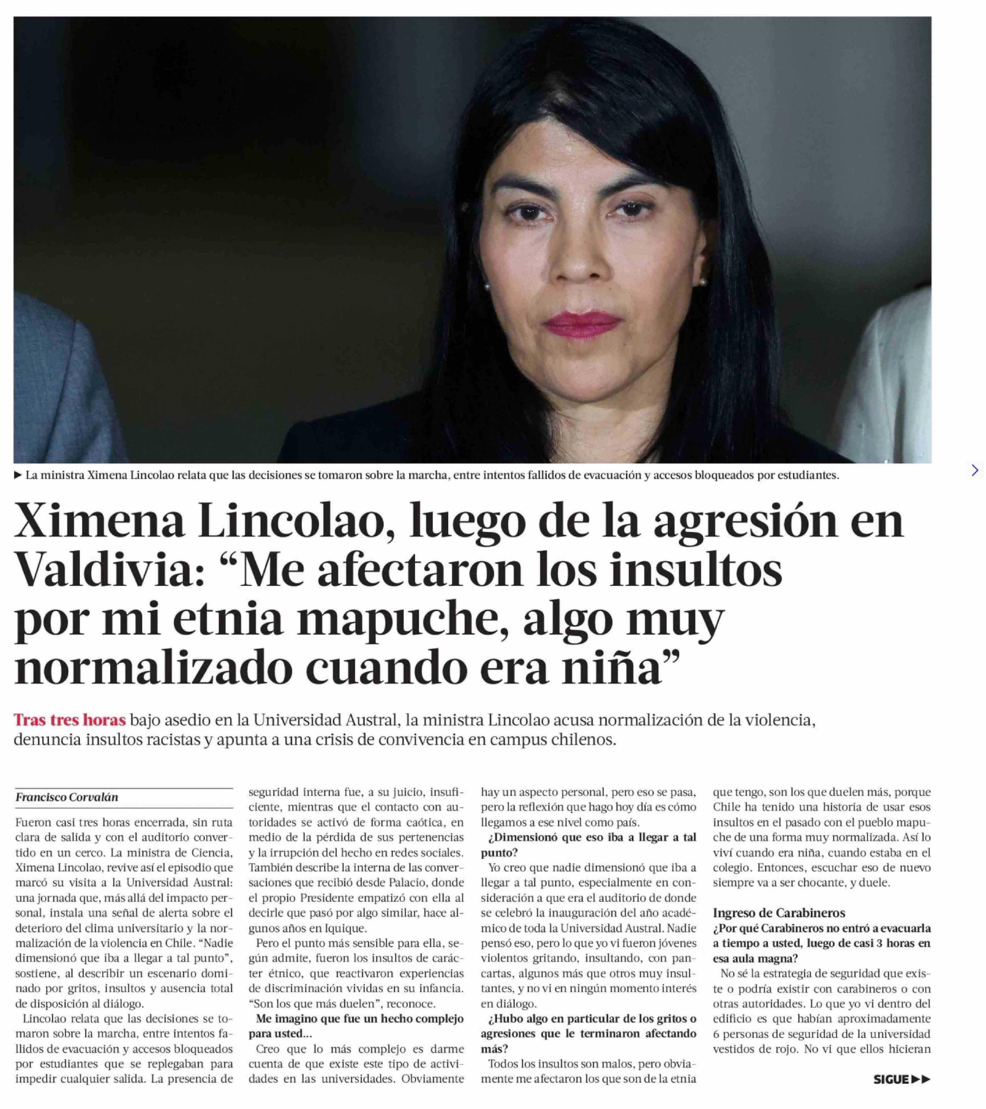 Ximena Lincolao, luego de la agresión en Valdivia: "Me afectaron los insultos por mi etnia mapuche, algo muy normalizado cuando era niña"