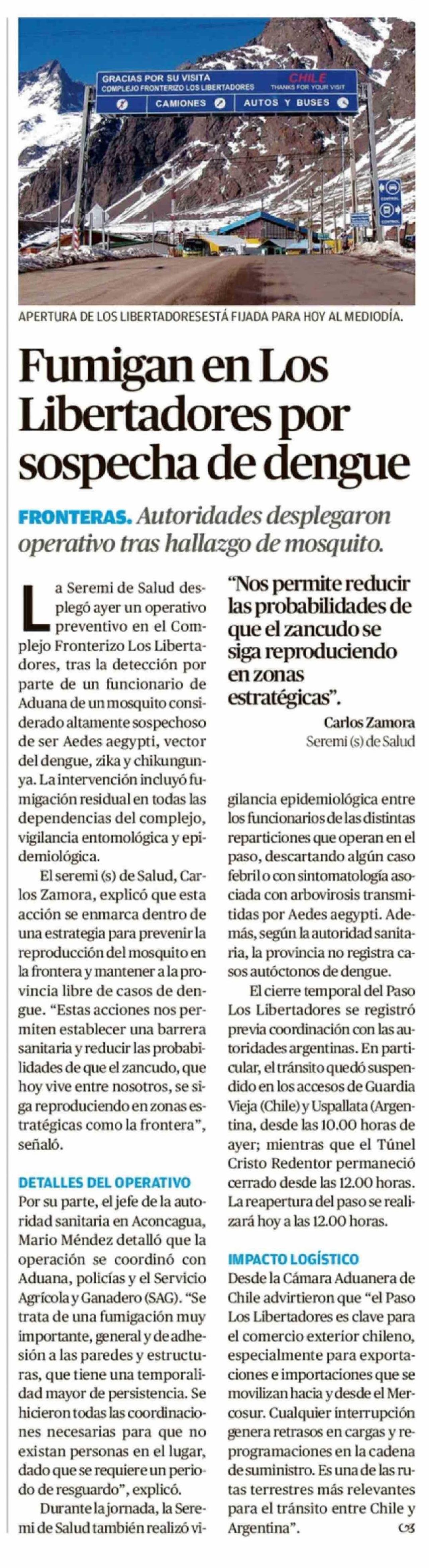 Fumigan en Los Libertadores por sospecha de dengue