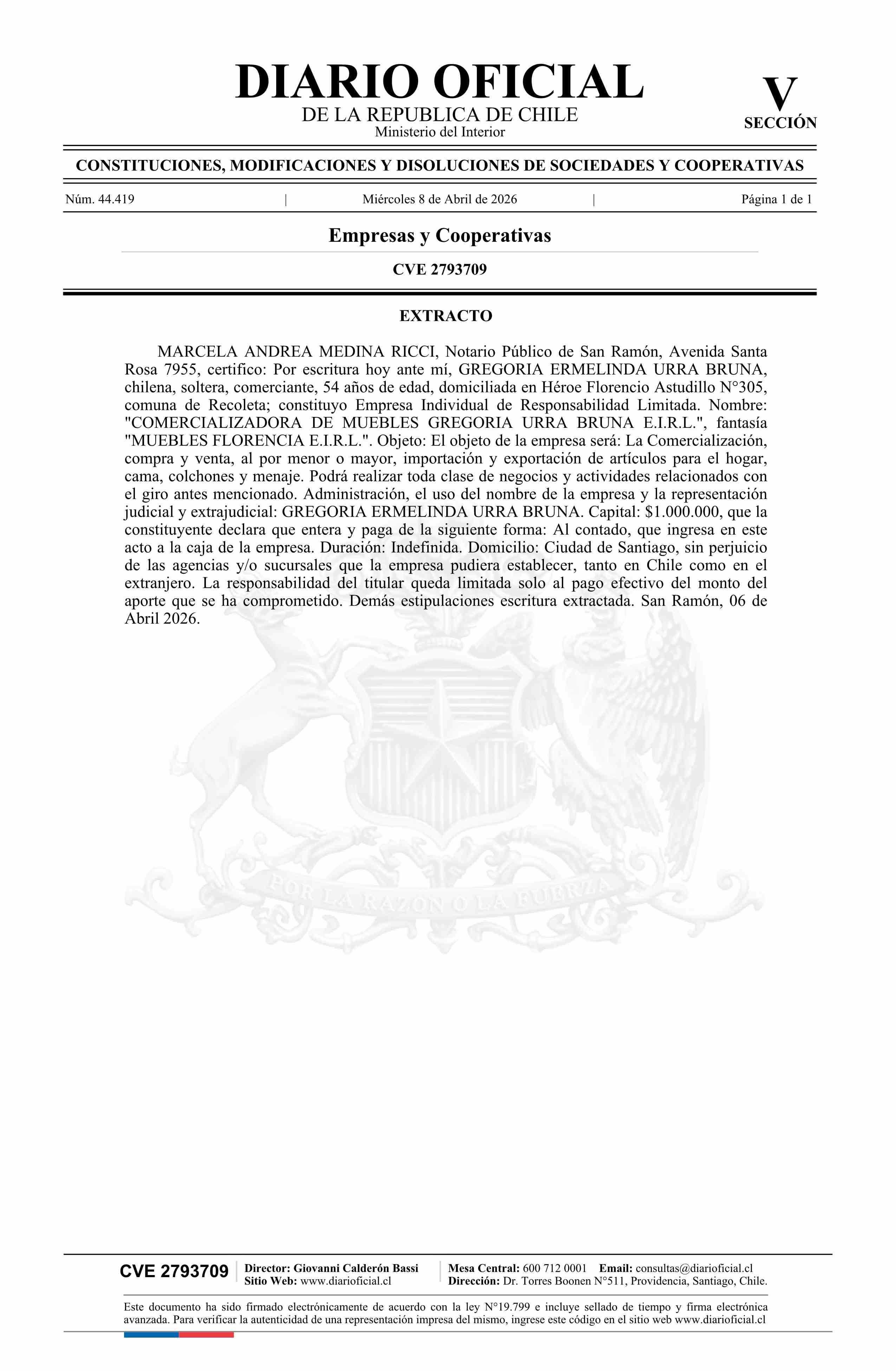 COMERCIALIZADORA DE MUEBLES GREGORIA URRA BRUNA E.I.R.L.