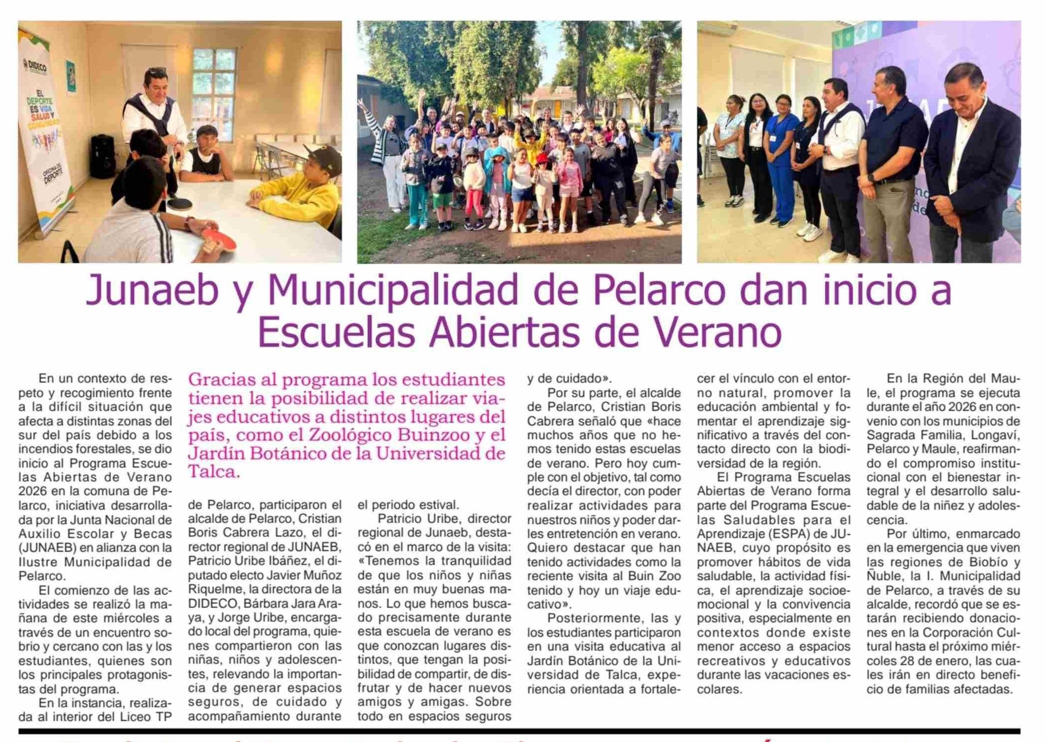 Junaeb y Municipalidad de Pelarco dan inicio a Escuelas Abiertas de Verano