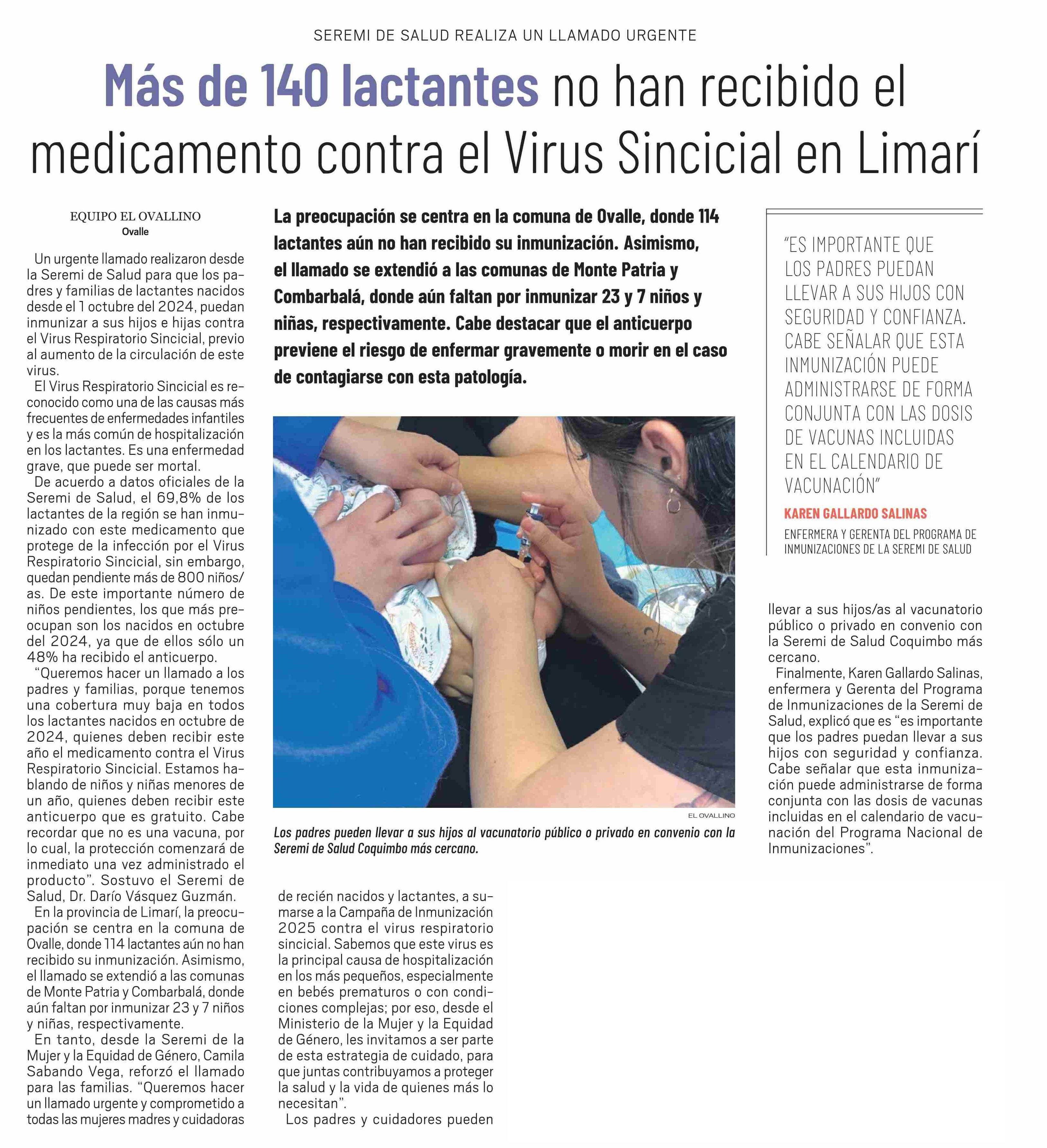Más de 140 lactantes no han recibido el medicamento contra el Virus Sincicial en Limarí