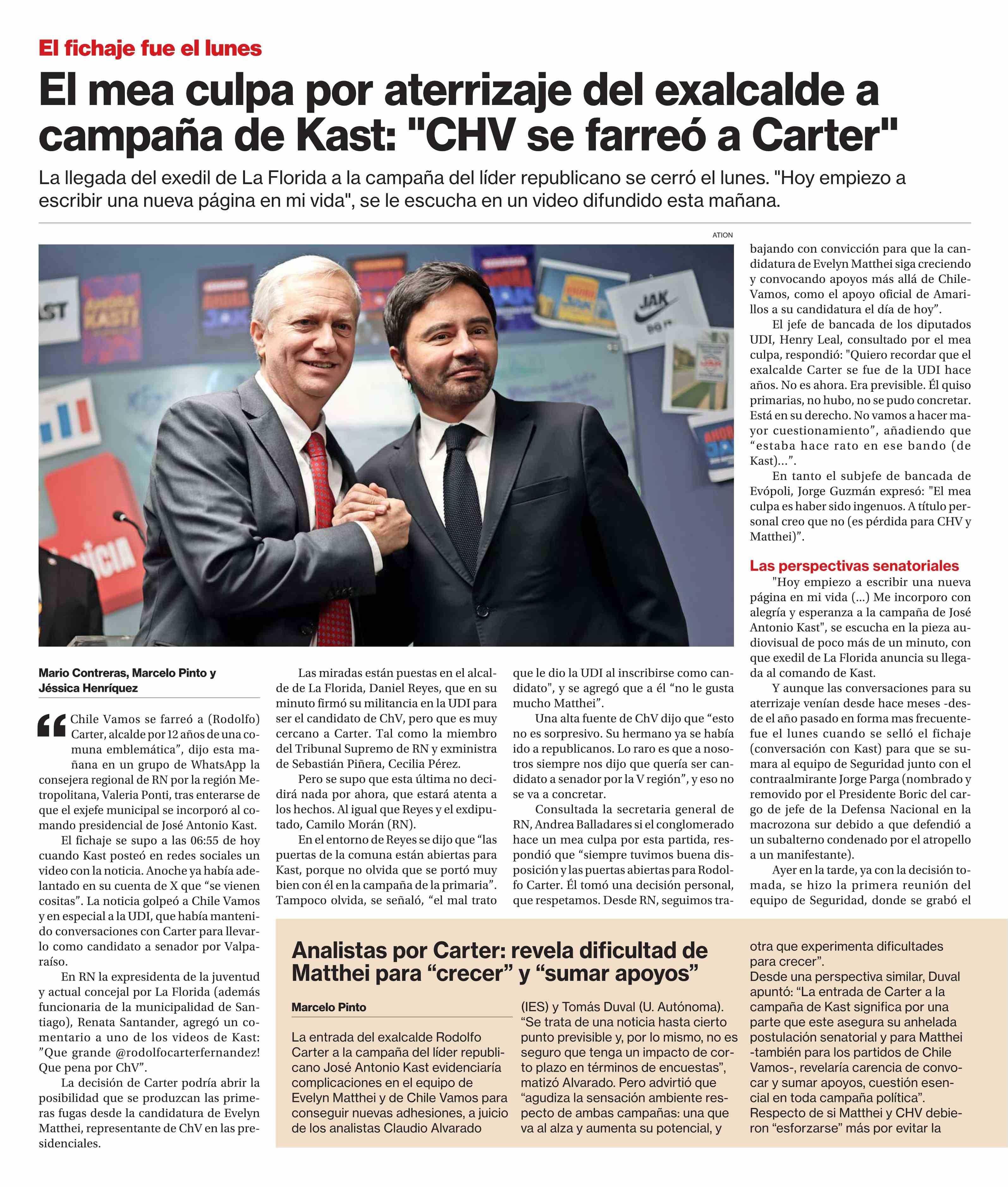 El mea culpa por aterrizaje del exalcalde a campaña de Kast: "CHV se farreó a Carter"