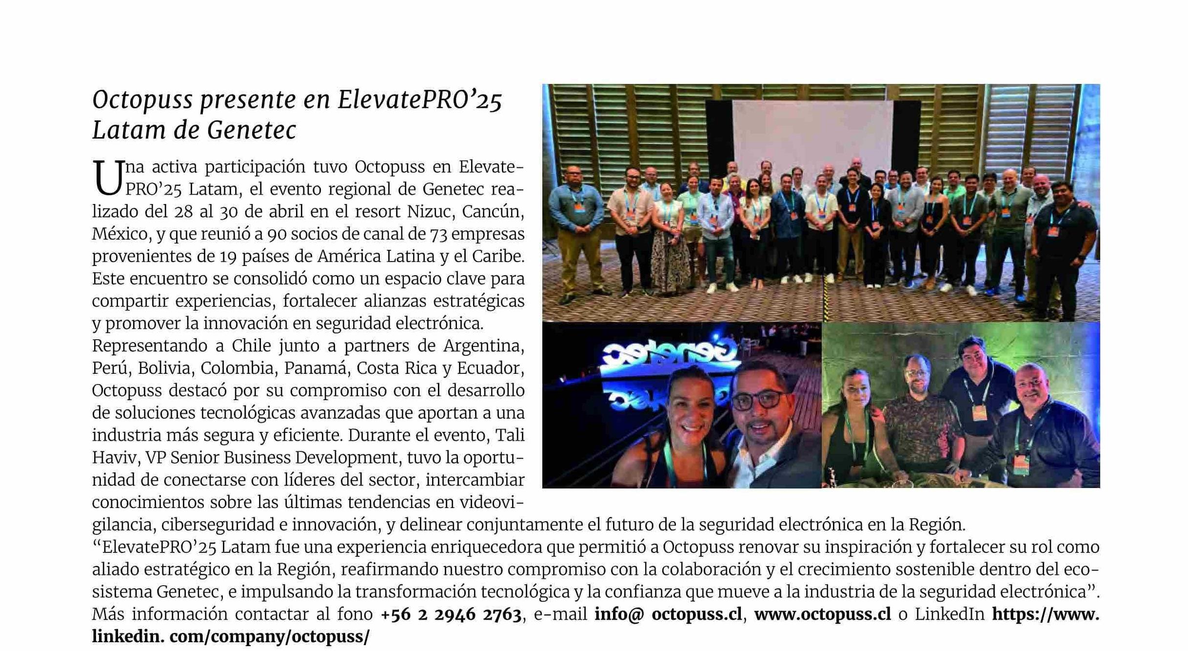 Octopuss presente en ElevatePRO’25 Latam de Genetec