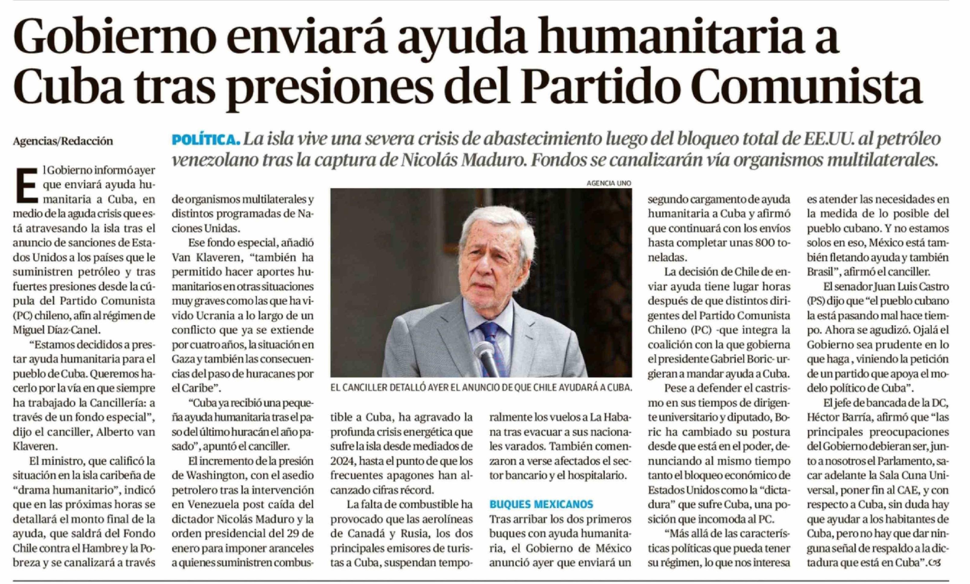 Gobierno enviará ayuda humanitaria a Cuba tras presiones del Partido Comunista