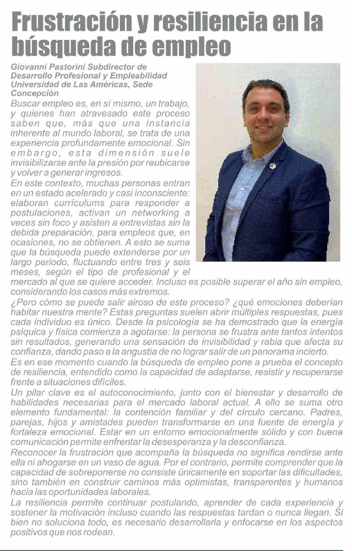 Columnas de Opinión: Frustración y resiliencia en la búsqueda de empleo
