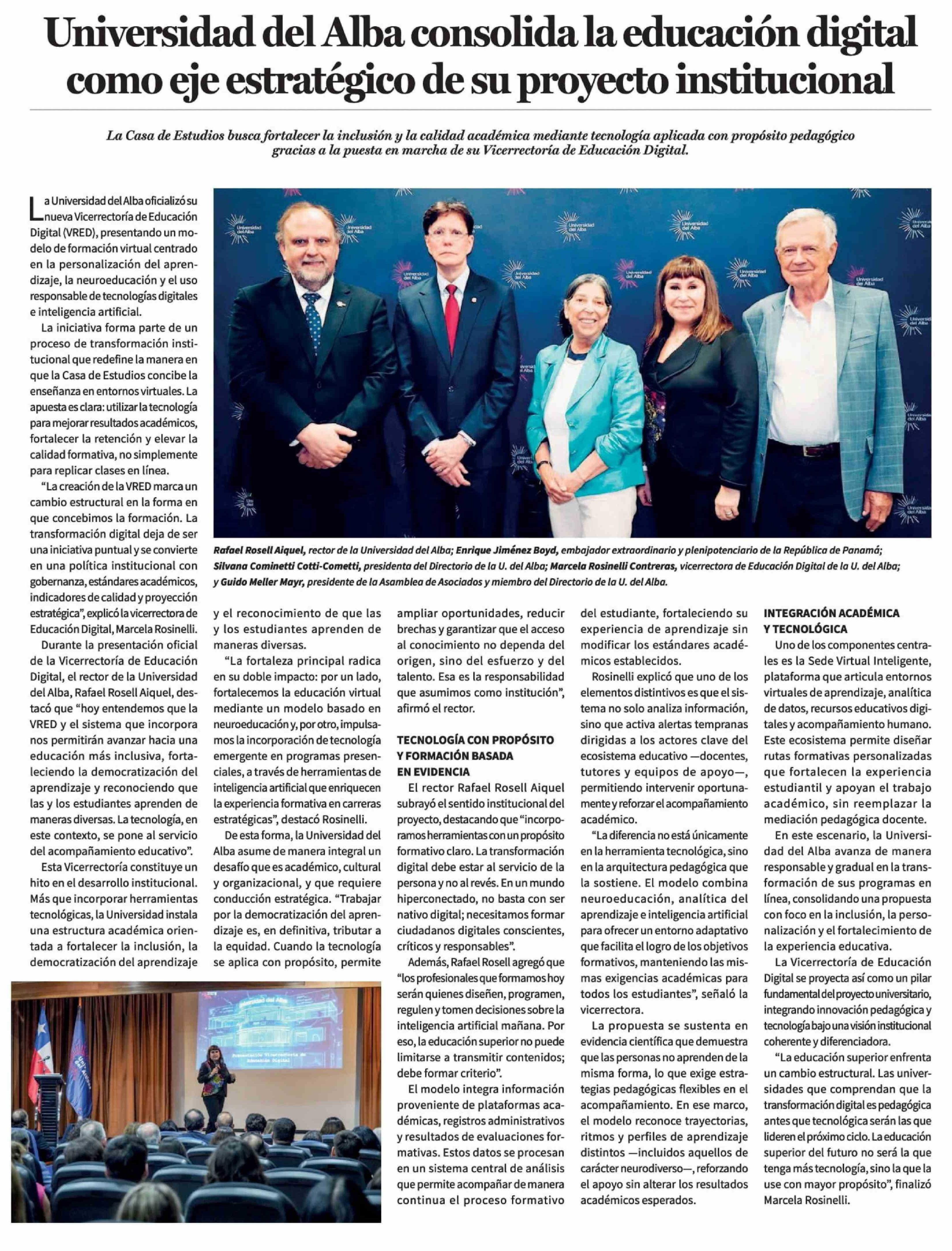 Título: Universidad del Alba consolida la educación digital como eje estratégico de su proyecto institucional