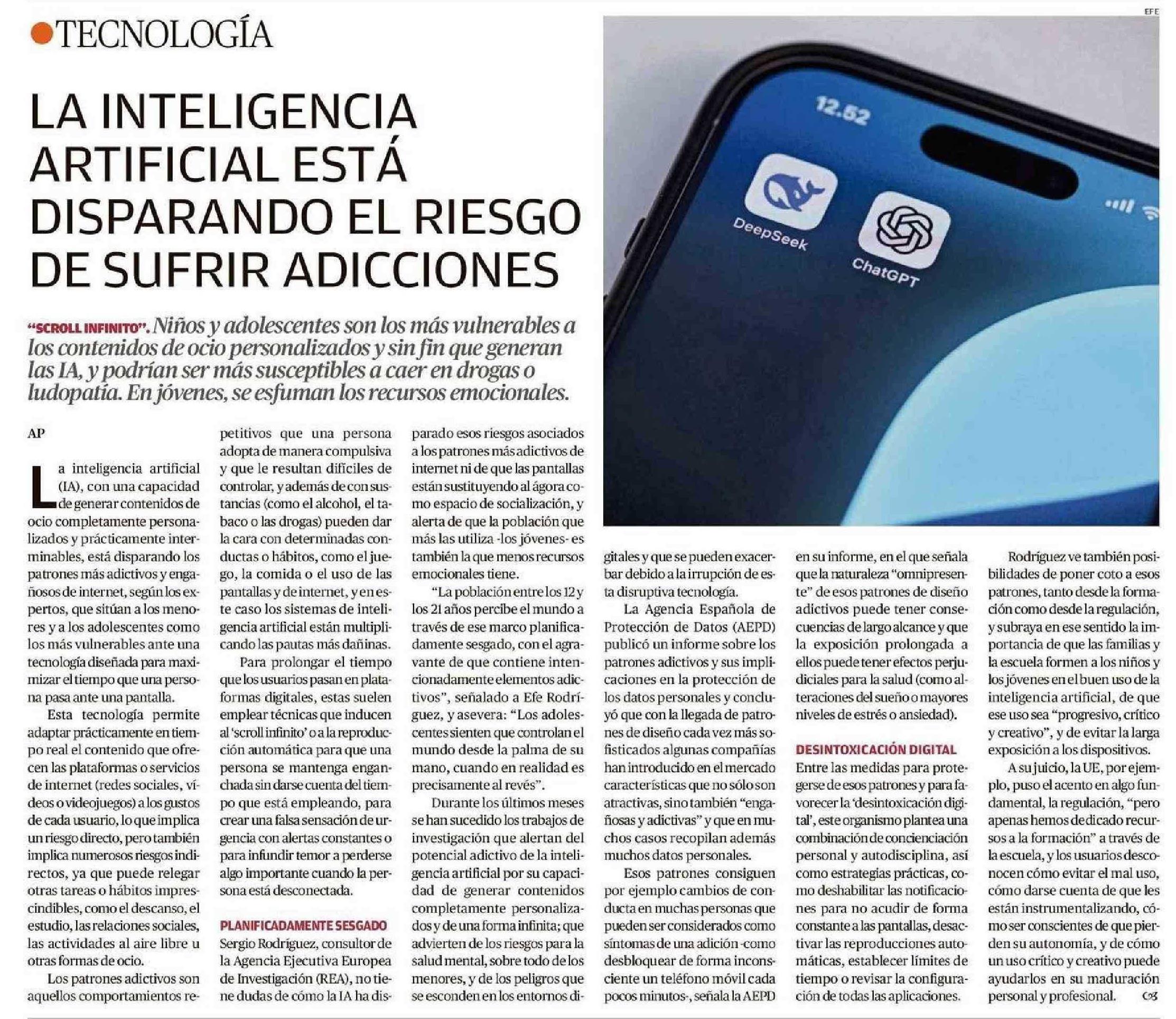 LA INTELIGENCIA ARTIFICIAL ESTÁ DISPARANDO EL RIESGO DE SUFRIR ADICCIONES