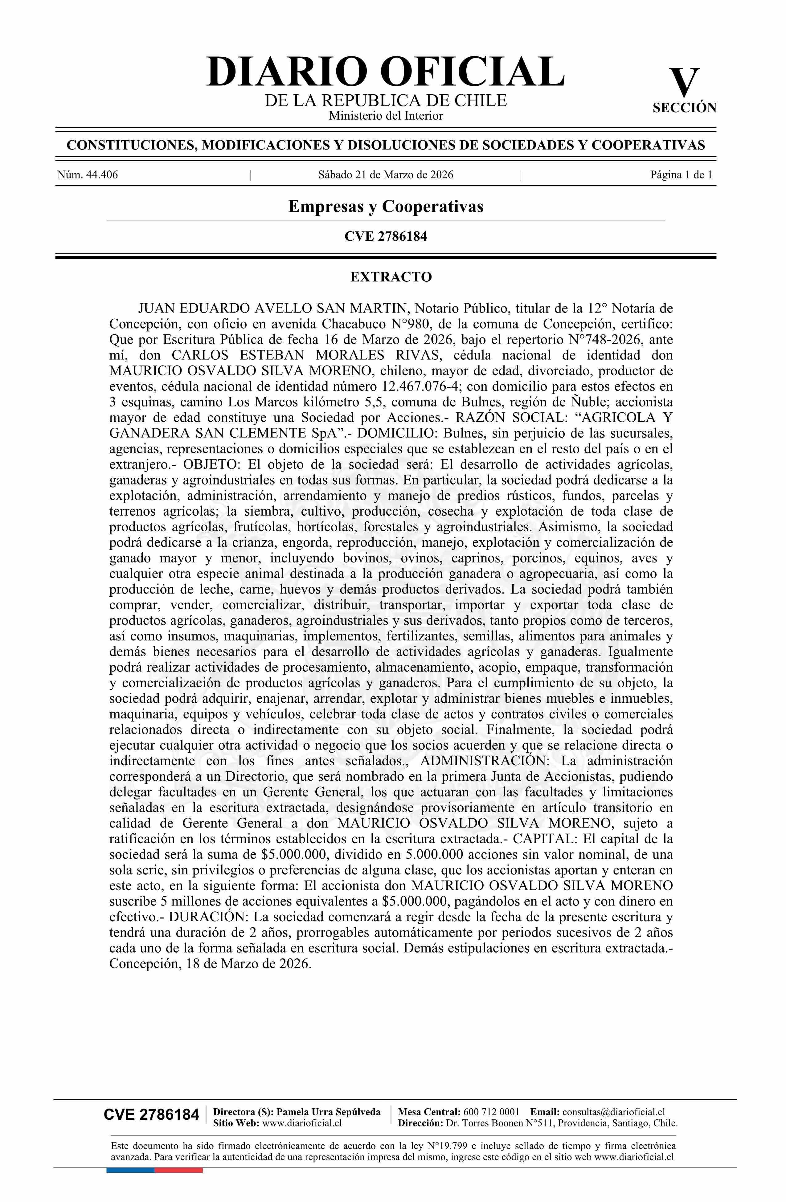 Diario Oficial Edición Electrónica (Diario Oficial de Chile - 5 Empresas Y Cooper)