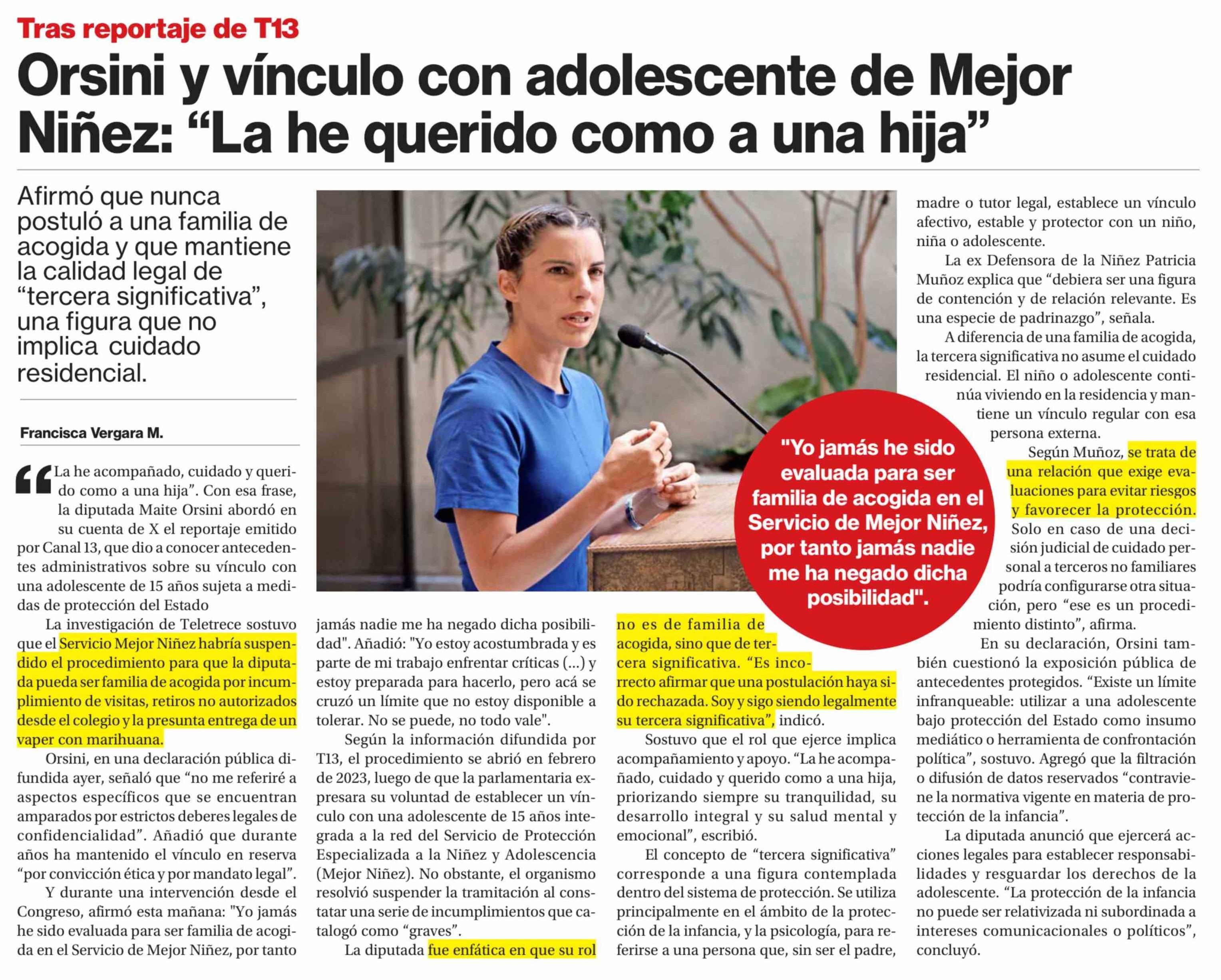 Orsini y vínculo con adolescente de Mejor Niñez: "La he querido como a una hija"