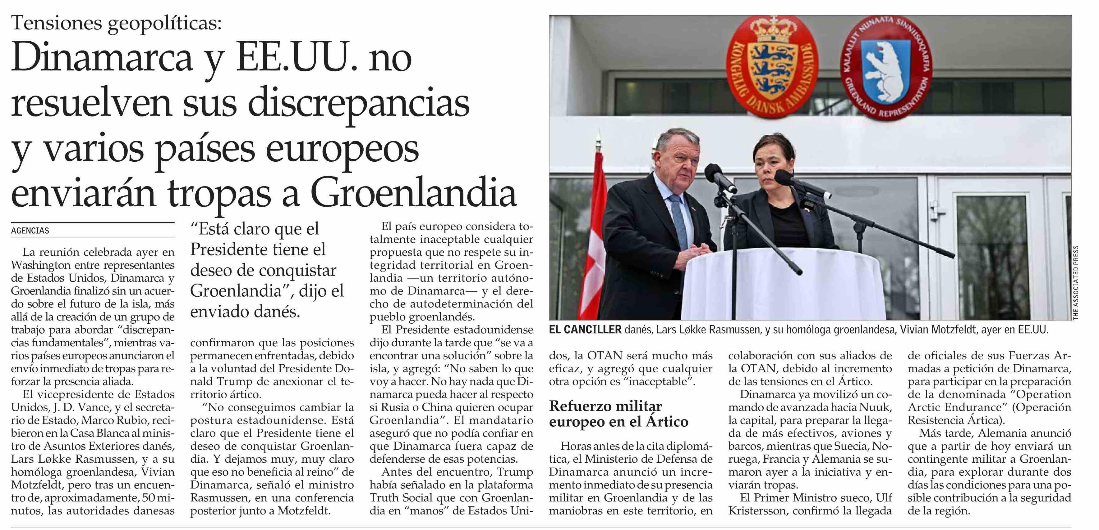 Dinamarca y EE.UU. no resuelven sus discrepancias y varios países europeos enviarán tropas a Groenlandia