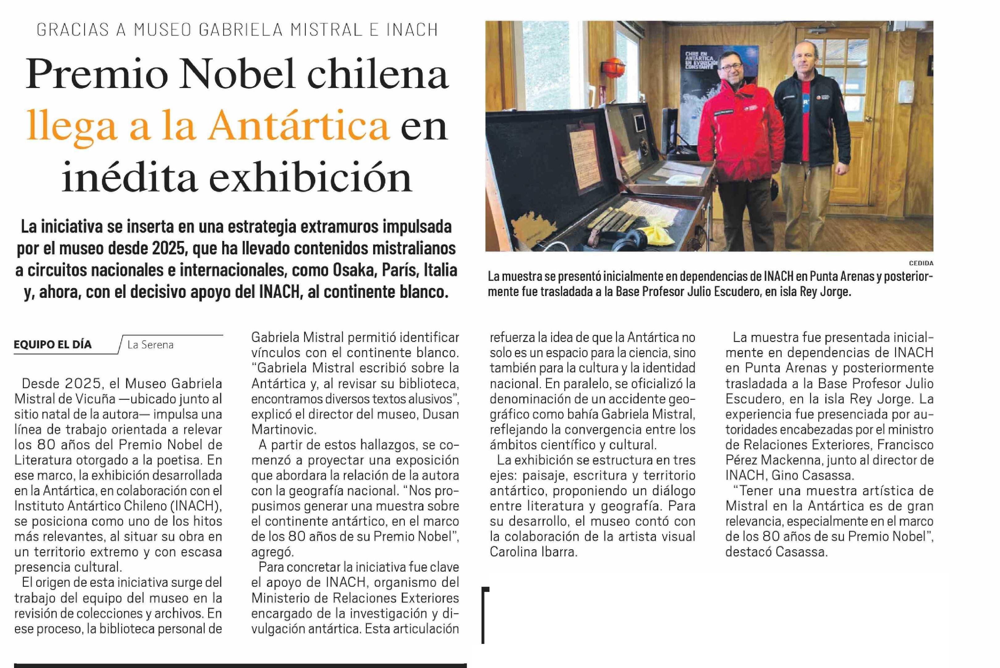 Premio Nobel chilena llega a la Antártica en inédita exhibición