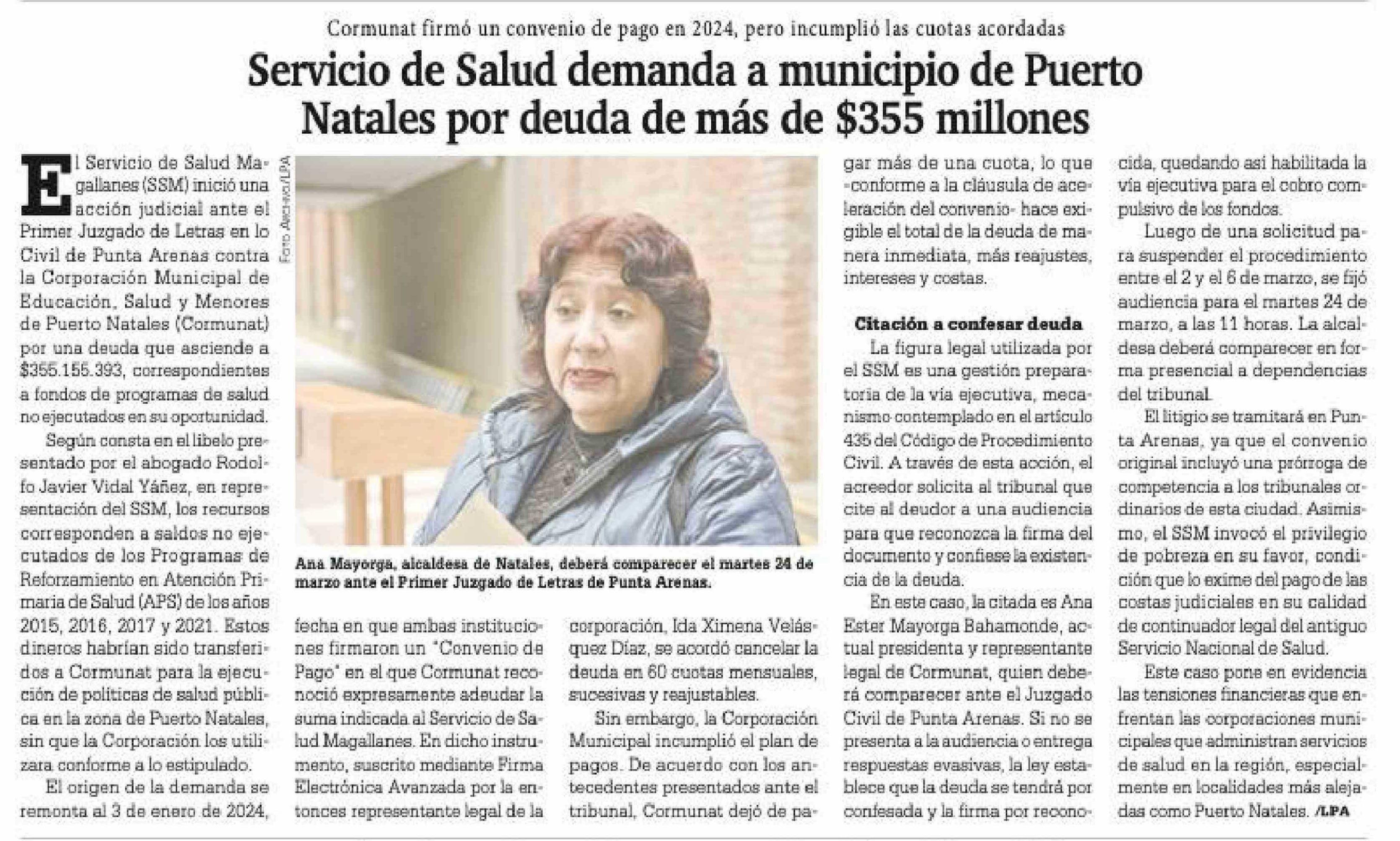 Servicio de Salud demanda a municipio de Puerto Natales por deuda de más de $355 millones