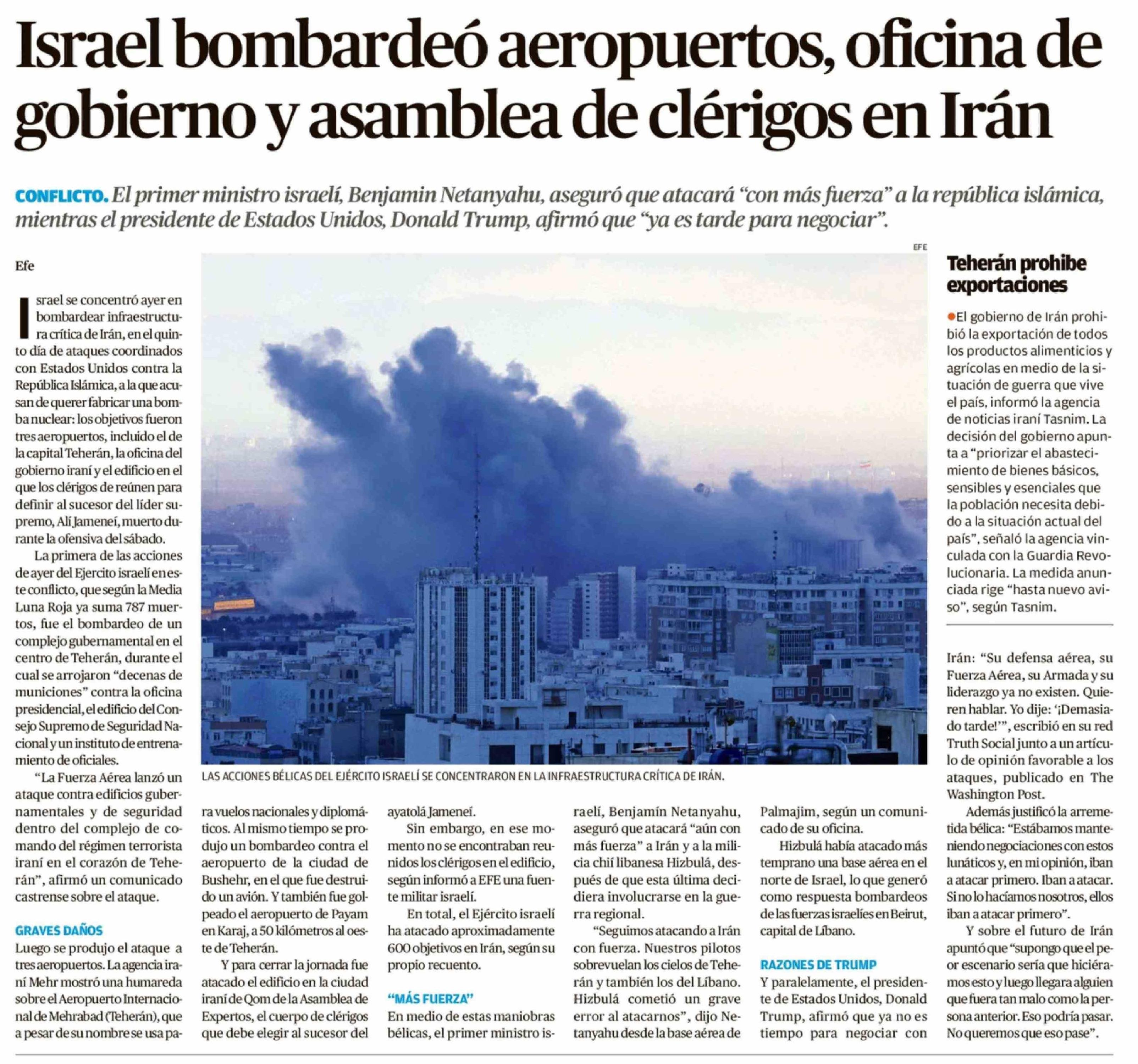 Israel bombardeó aeropuertos, oficina de gobierno y asamblea de clérigos en Irán