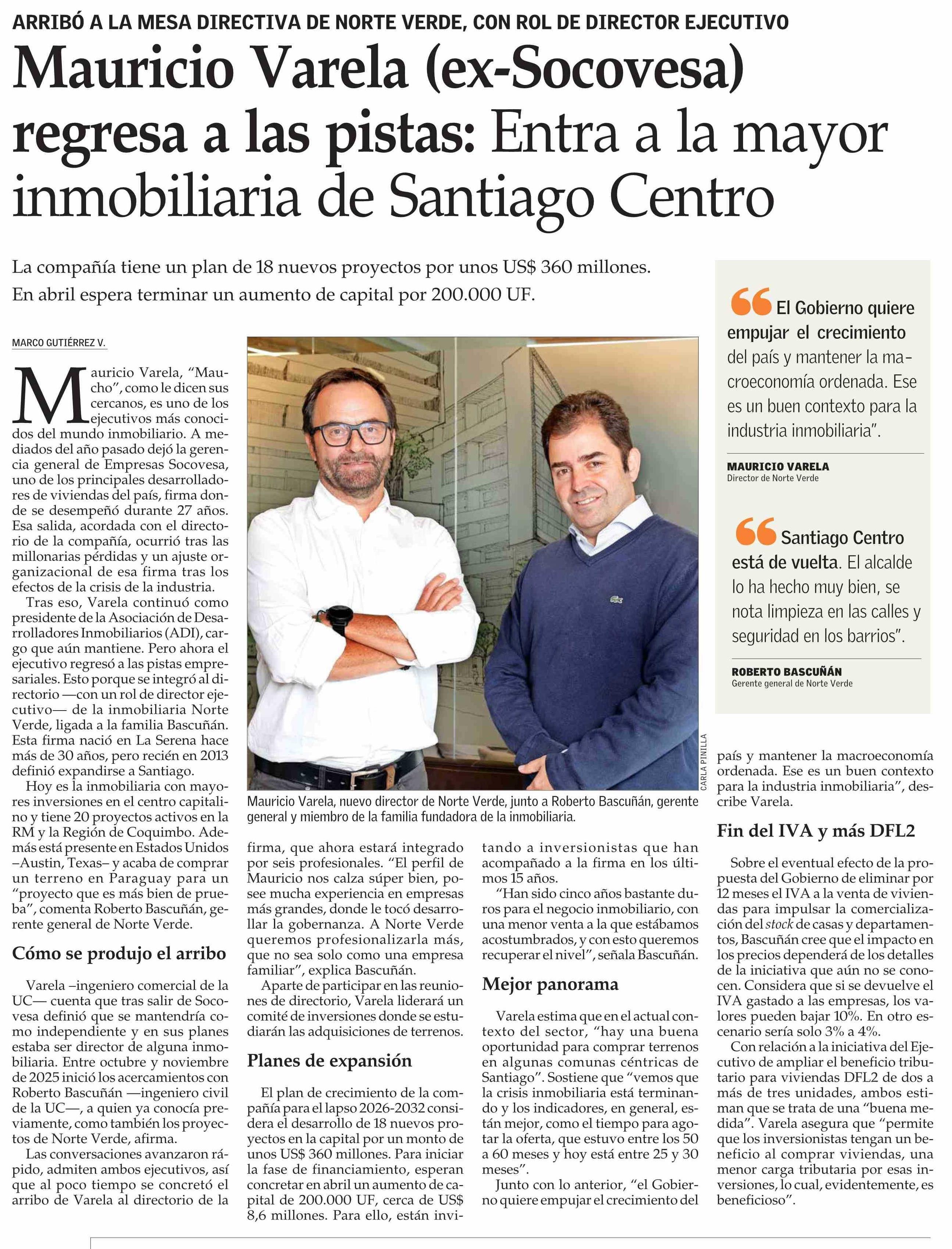 Título: Mauricio Varela (ex-Socovesa) regresa a las pistas: Entra a la mayor inmobiliaria de Santiago Centro
