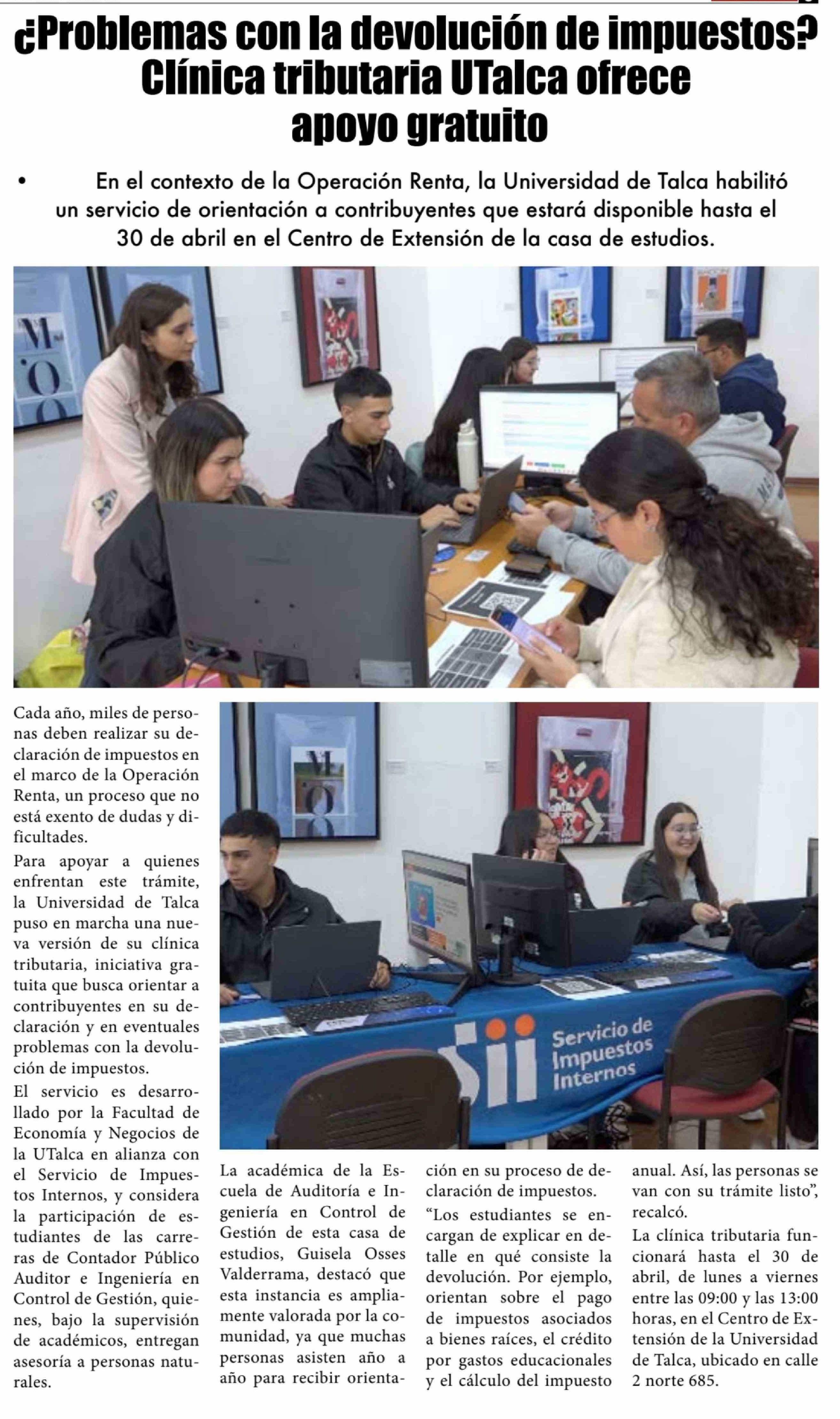 ¿Problemas con la devolución de impuestos? Clínica tributaria UTalca ofrece apoyo gratuito
