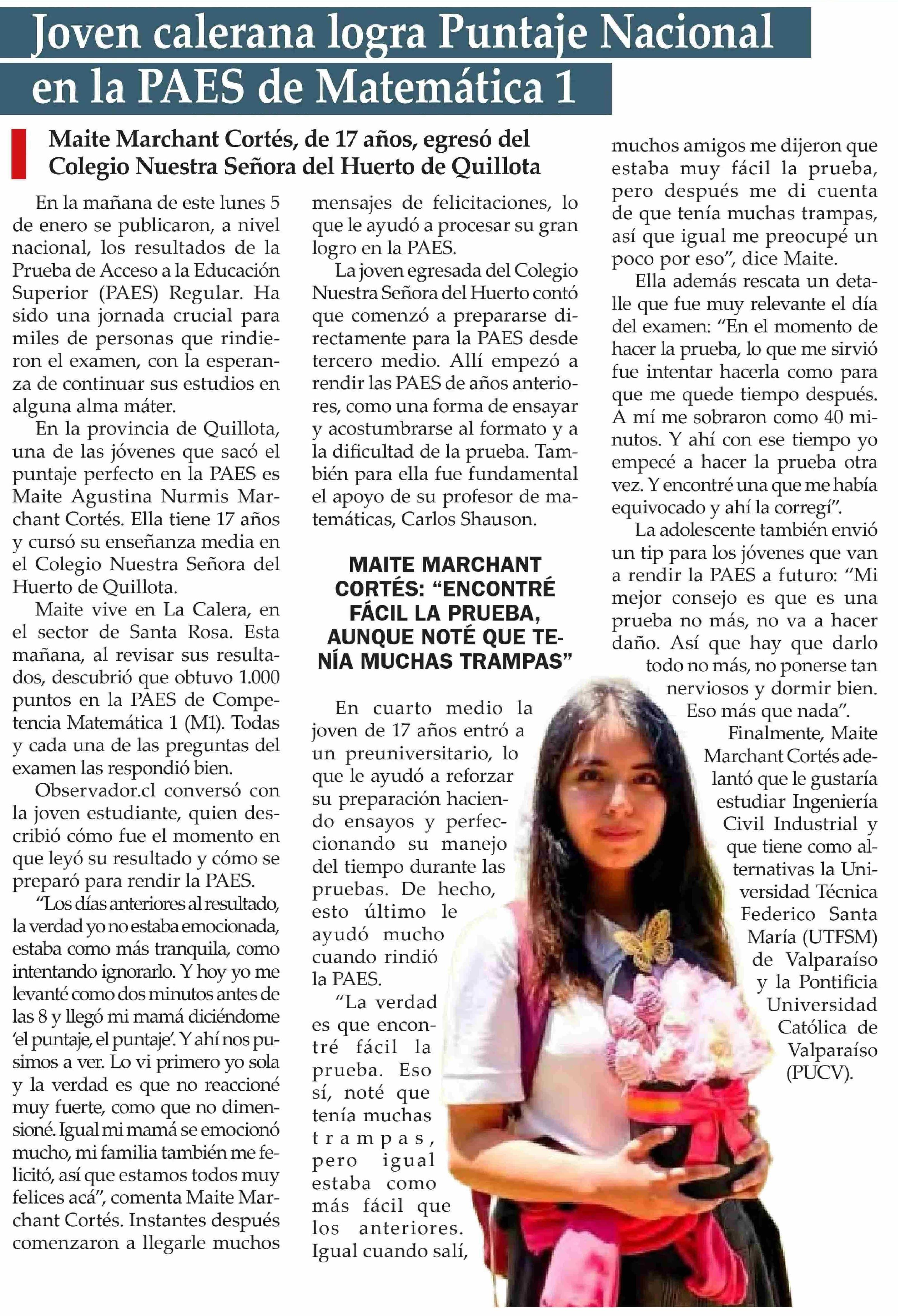 Joven calerana logra Puntaje Nacional en la PAES de Matemática 1