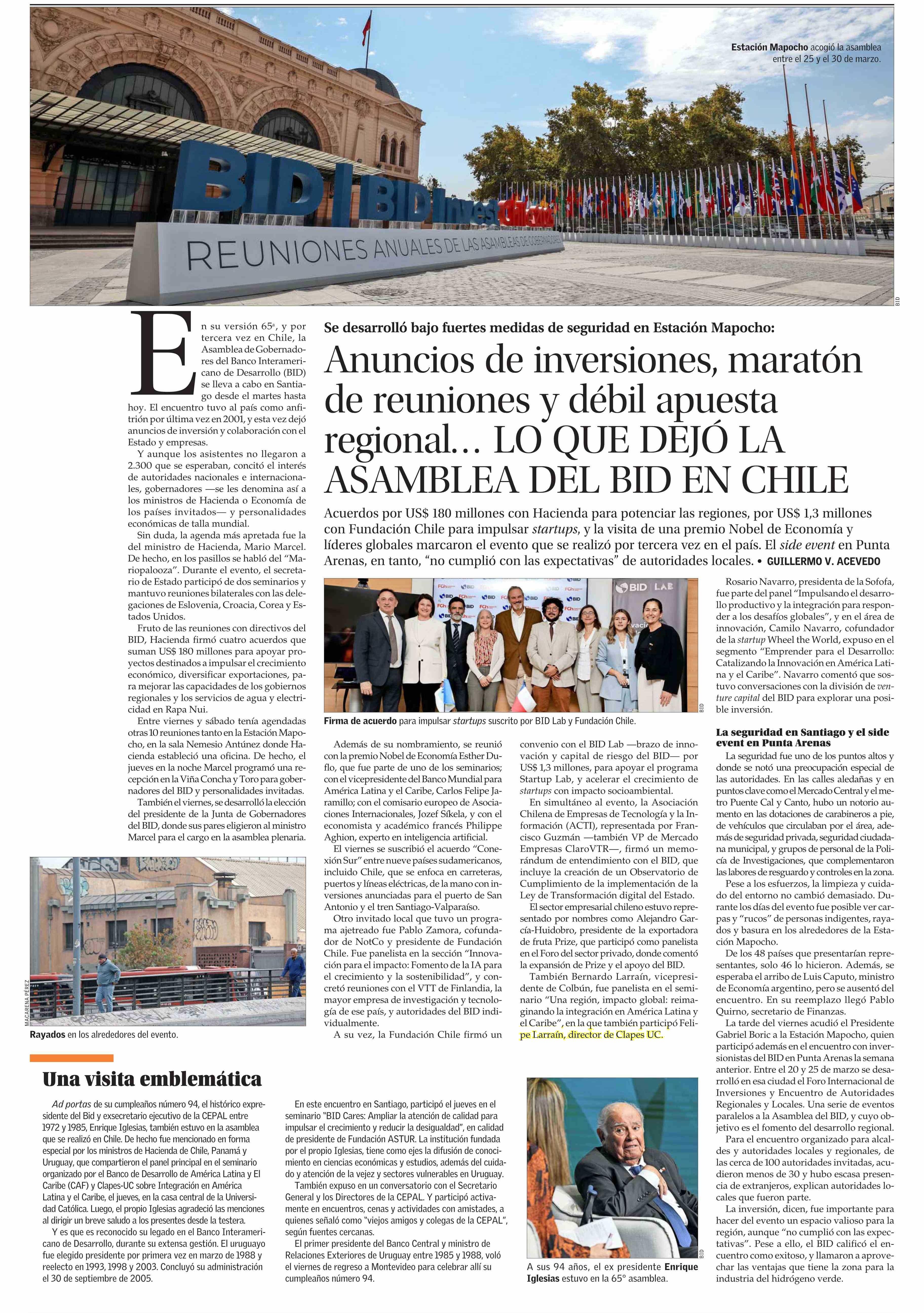 Anuncios de inversiones, maratón de reuniones y débil apuesta regional... LO QUE DEJÓ LA ASAMBLEA DEL BID EN CHILE