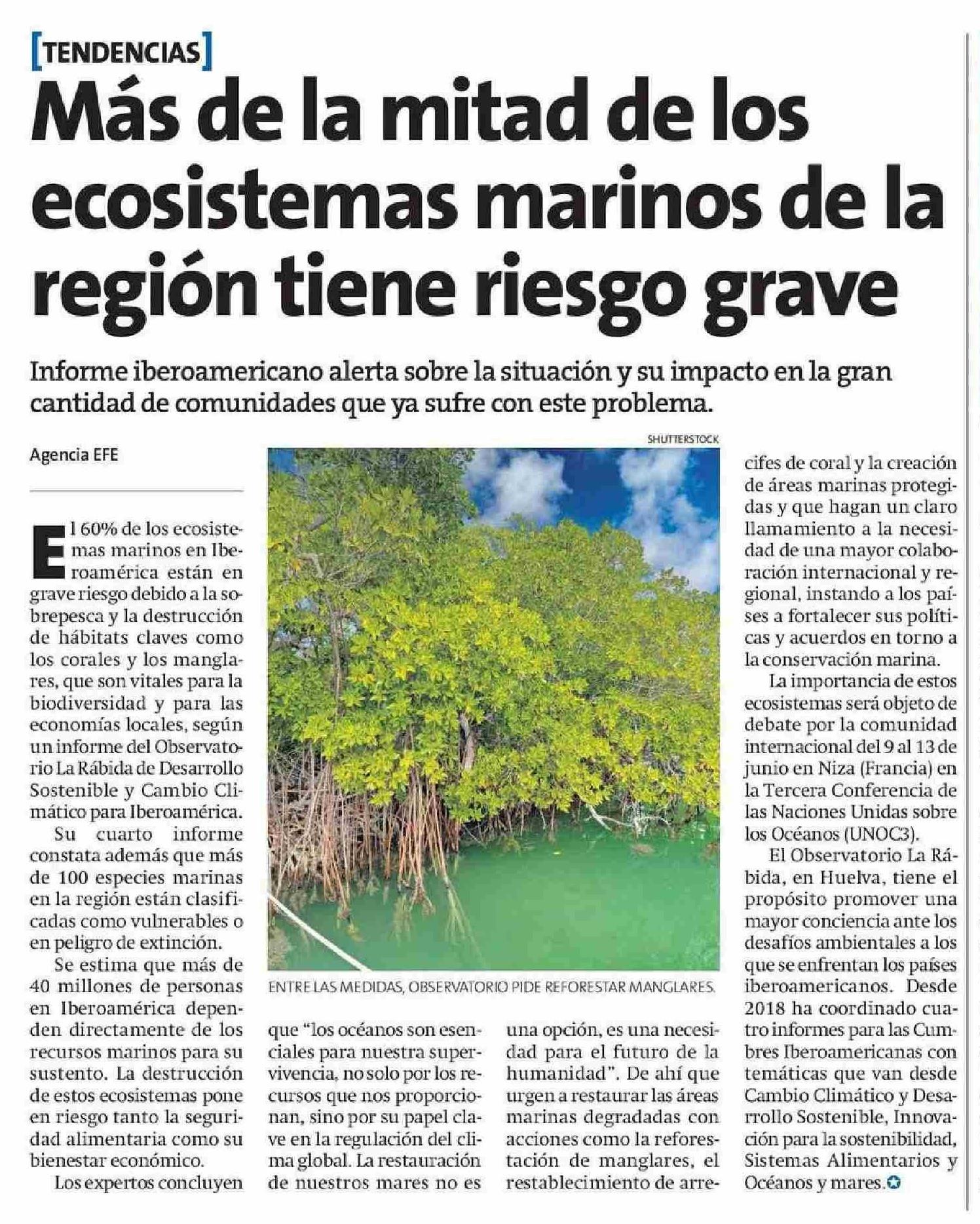 Más de la mitad de los región tiene riesgo grave ecosistemas marinos de la