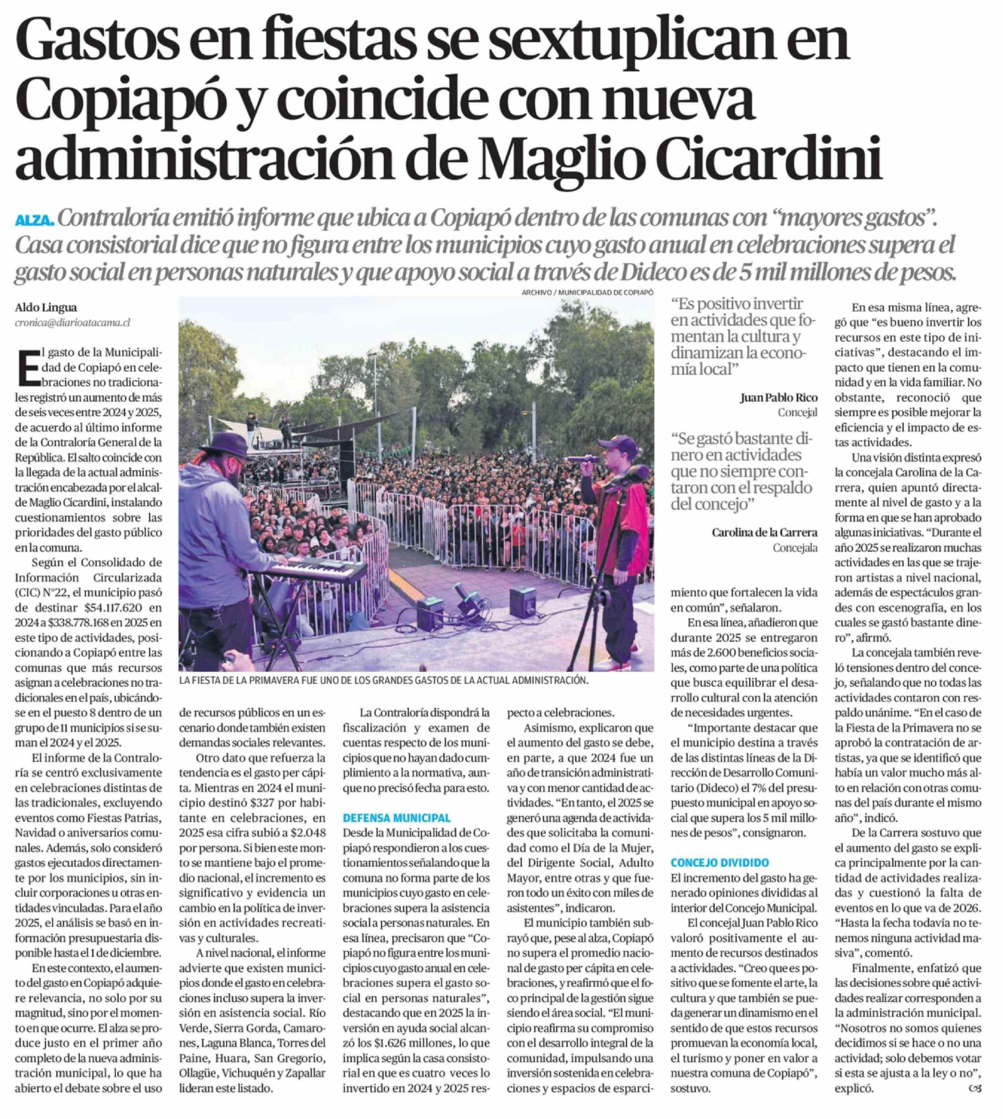 Gastos en fiestas se sextuplican en Copiapó y coincide con nueva administración de Maglio Cicardini
