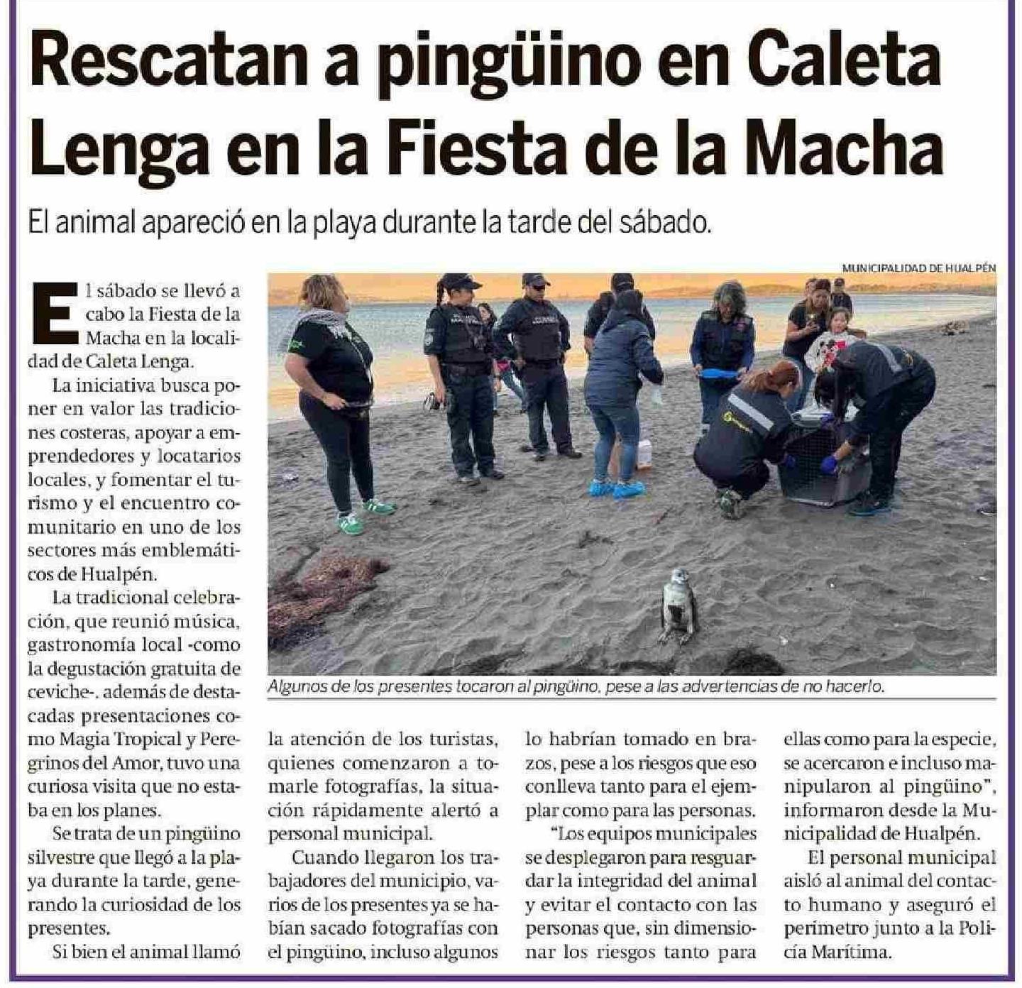 Rescatan a pingüino en Caleta Lenga en la Fiesta de la Macha