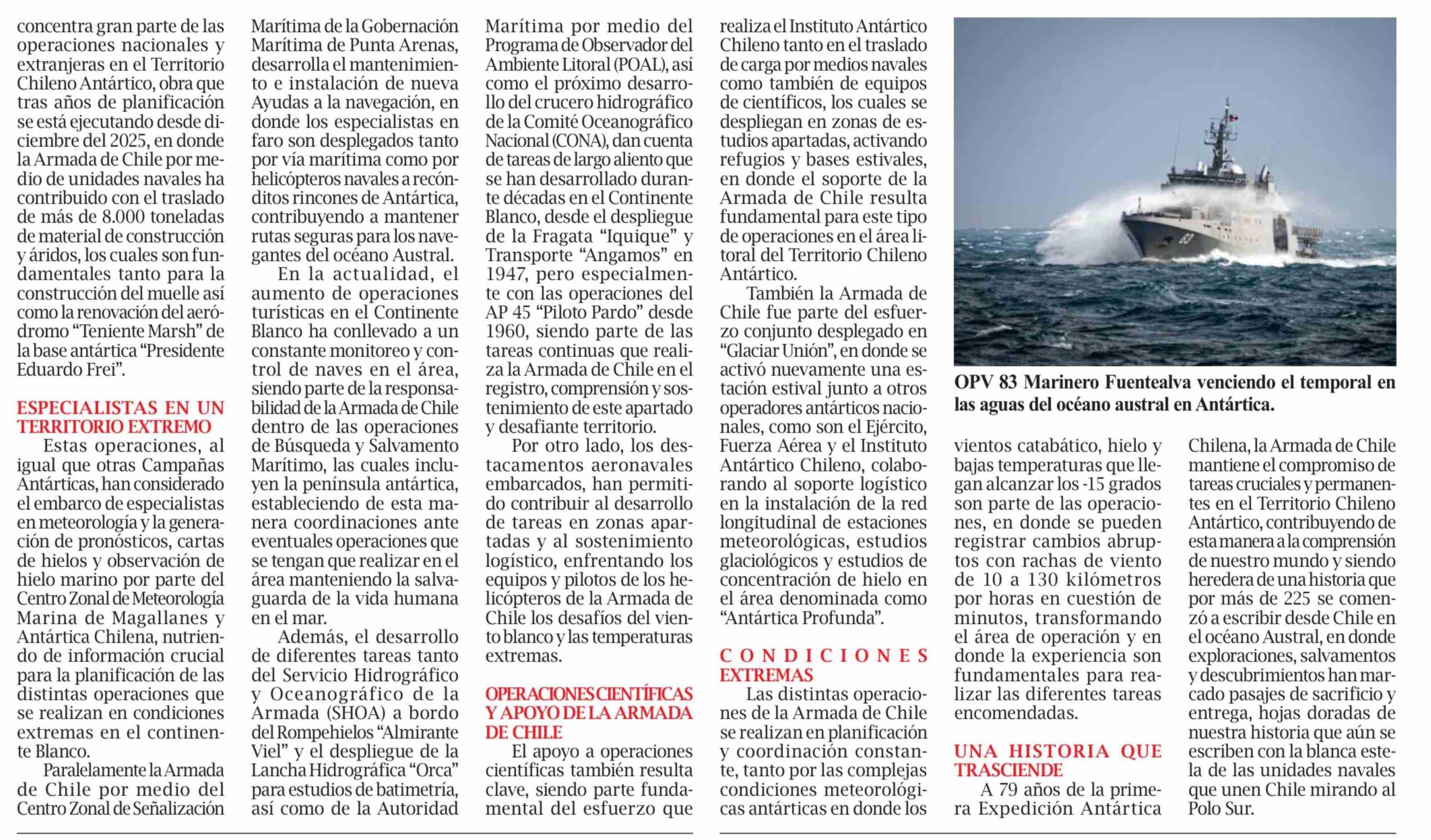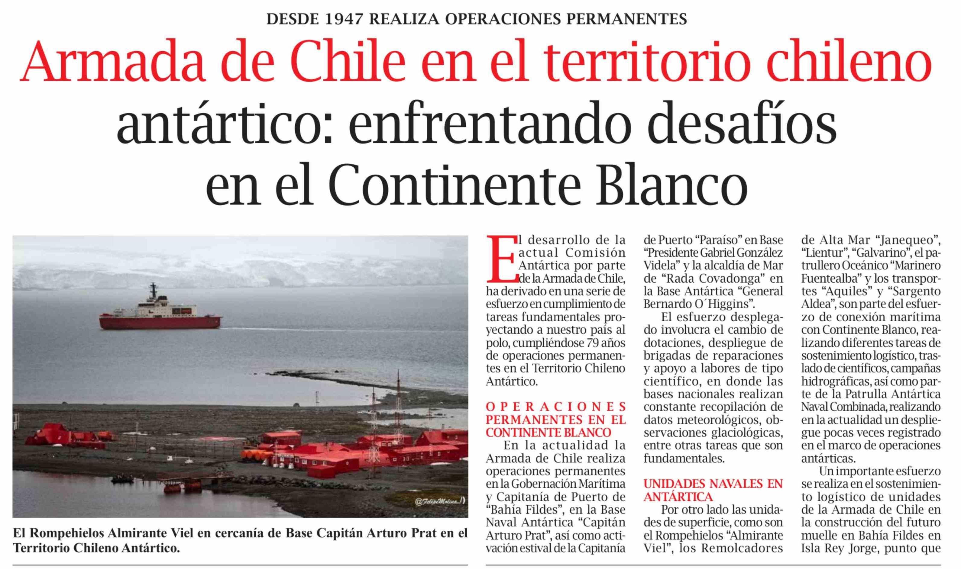 Armada de Chile en el territorio chileno antártico: enfrentando desafíos en el Continente Blanco