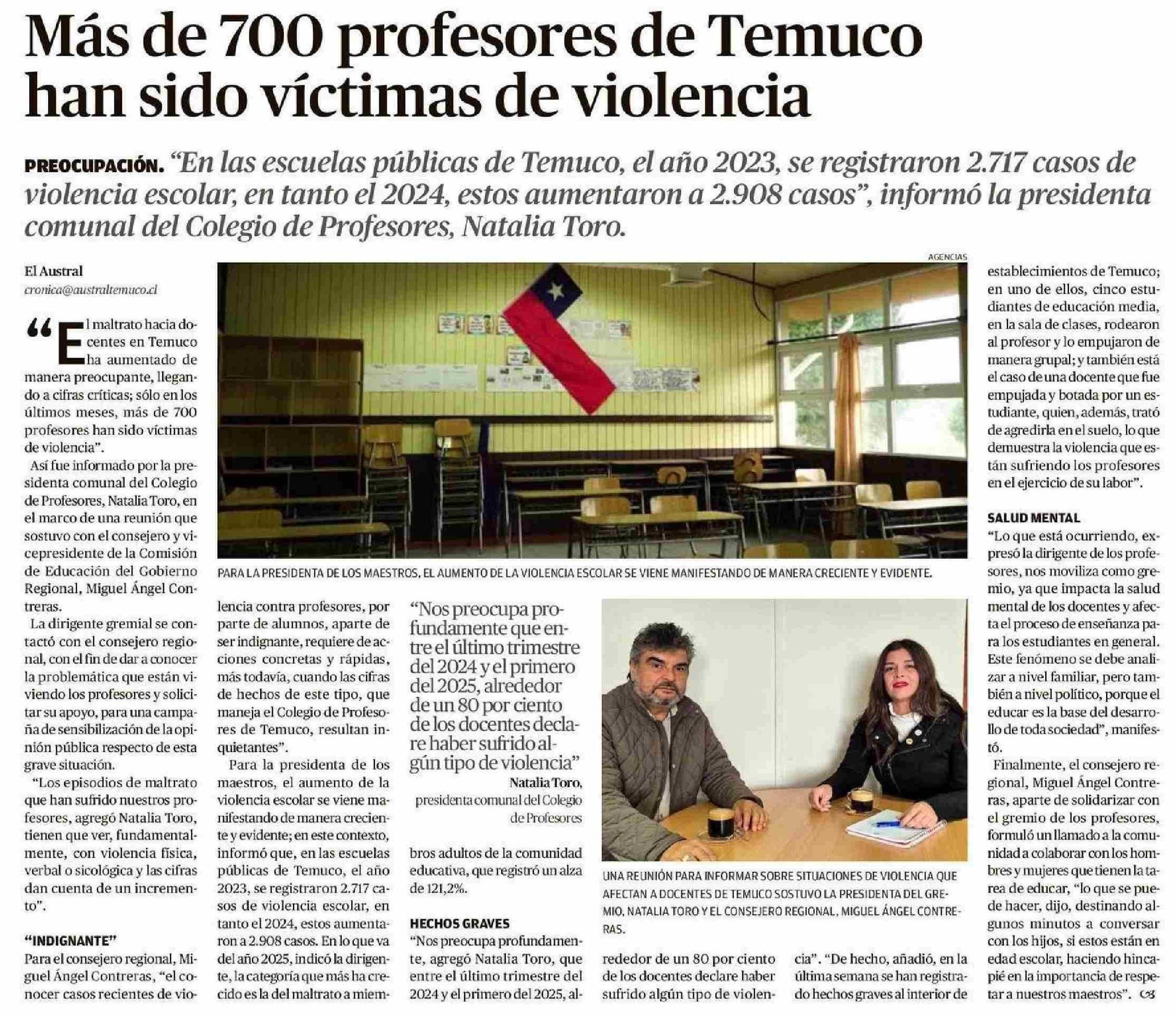 Más de 700 profesores de Temuco han sido víctimas de violencia