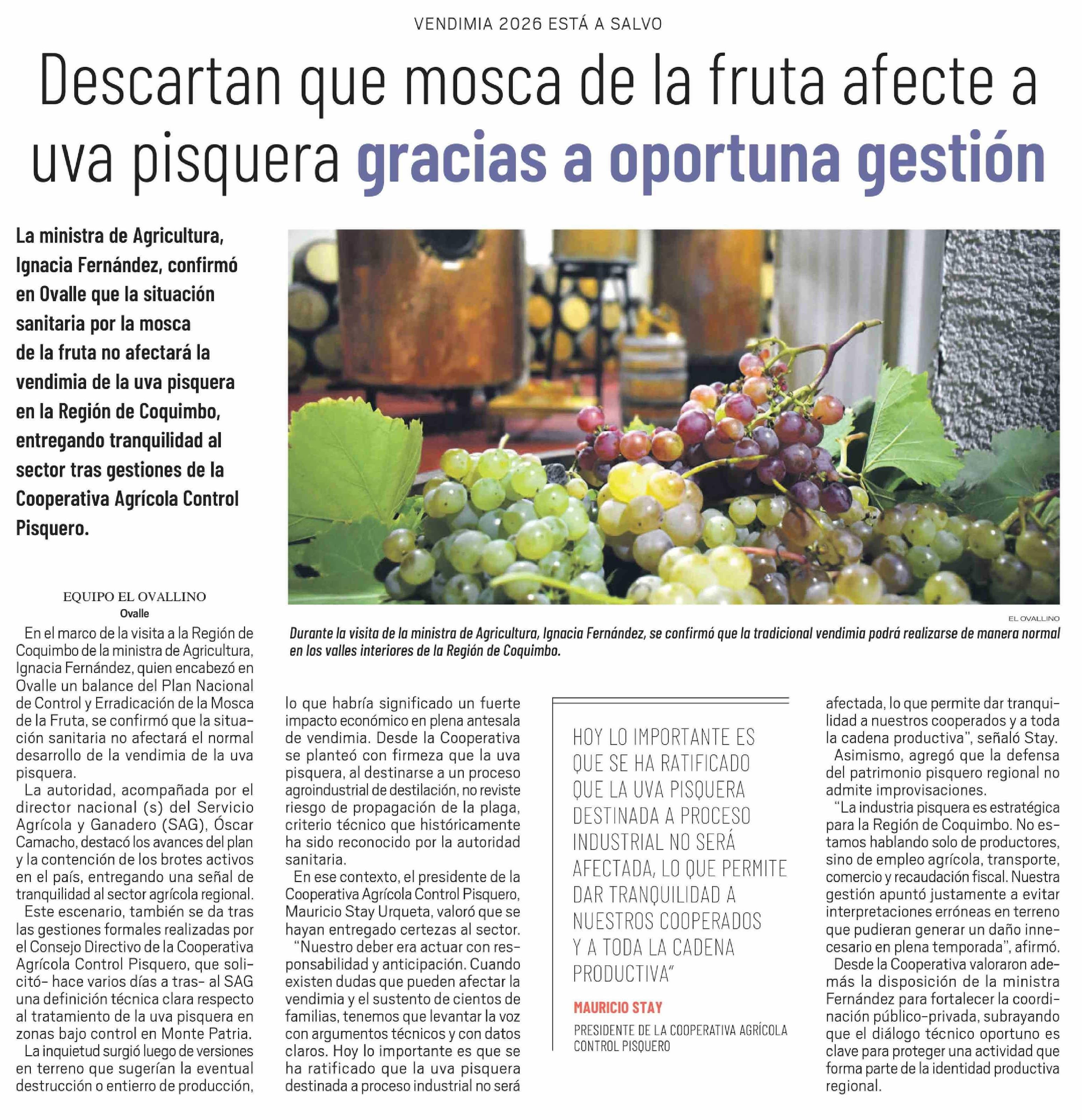 Descartan que mosca de la fruta afecte a uva pisquera gracias a oportuna gestión