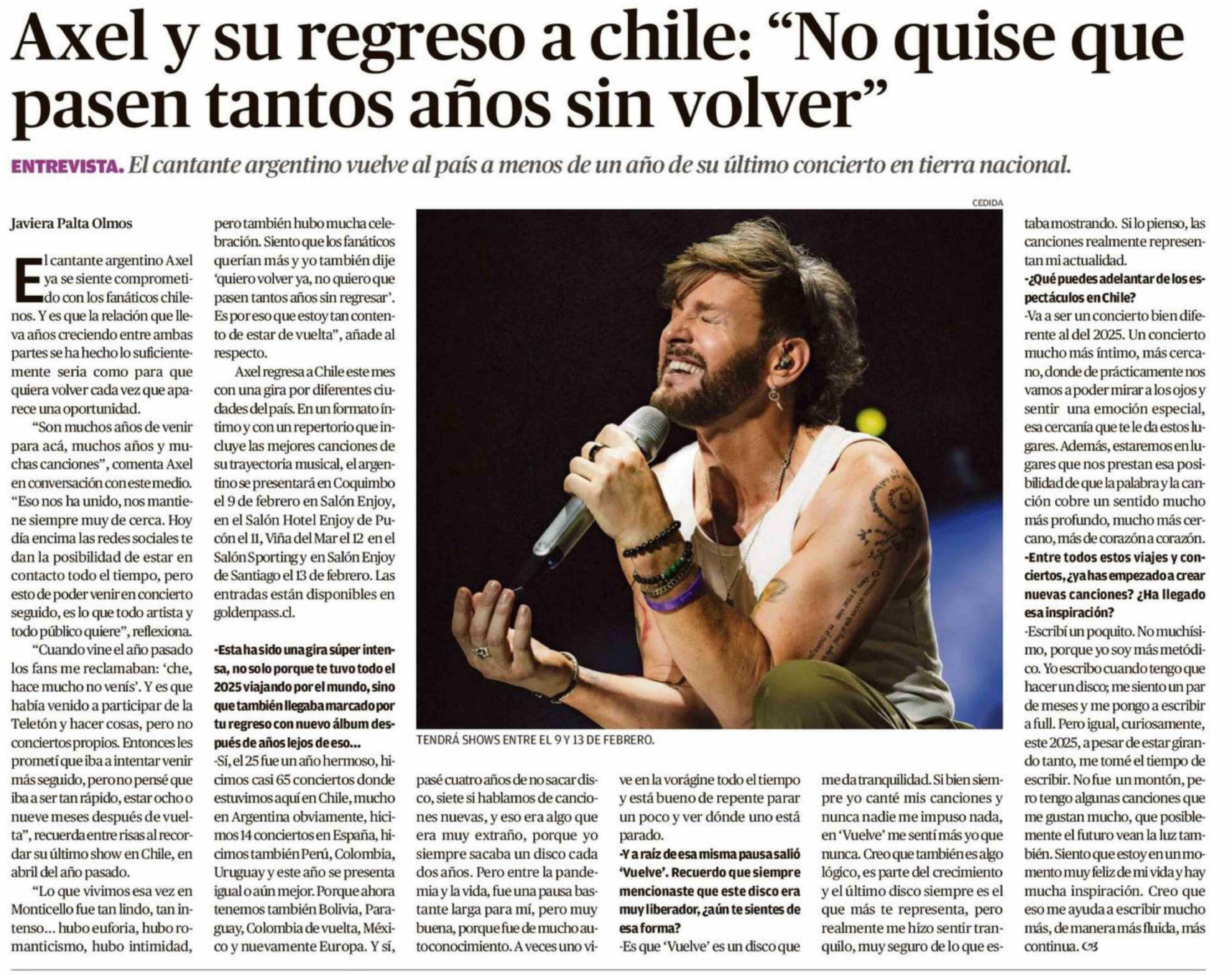 Axel y su regreso a chile: "No quise que pasen tantos años sin volver"