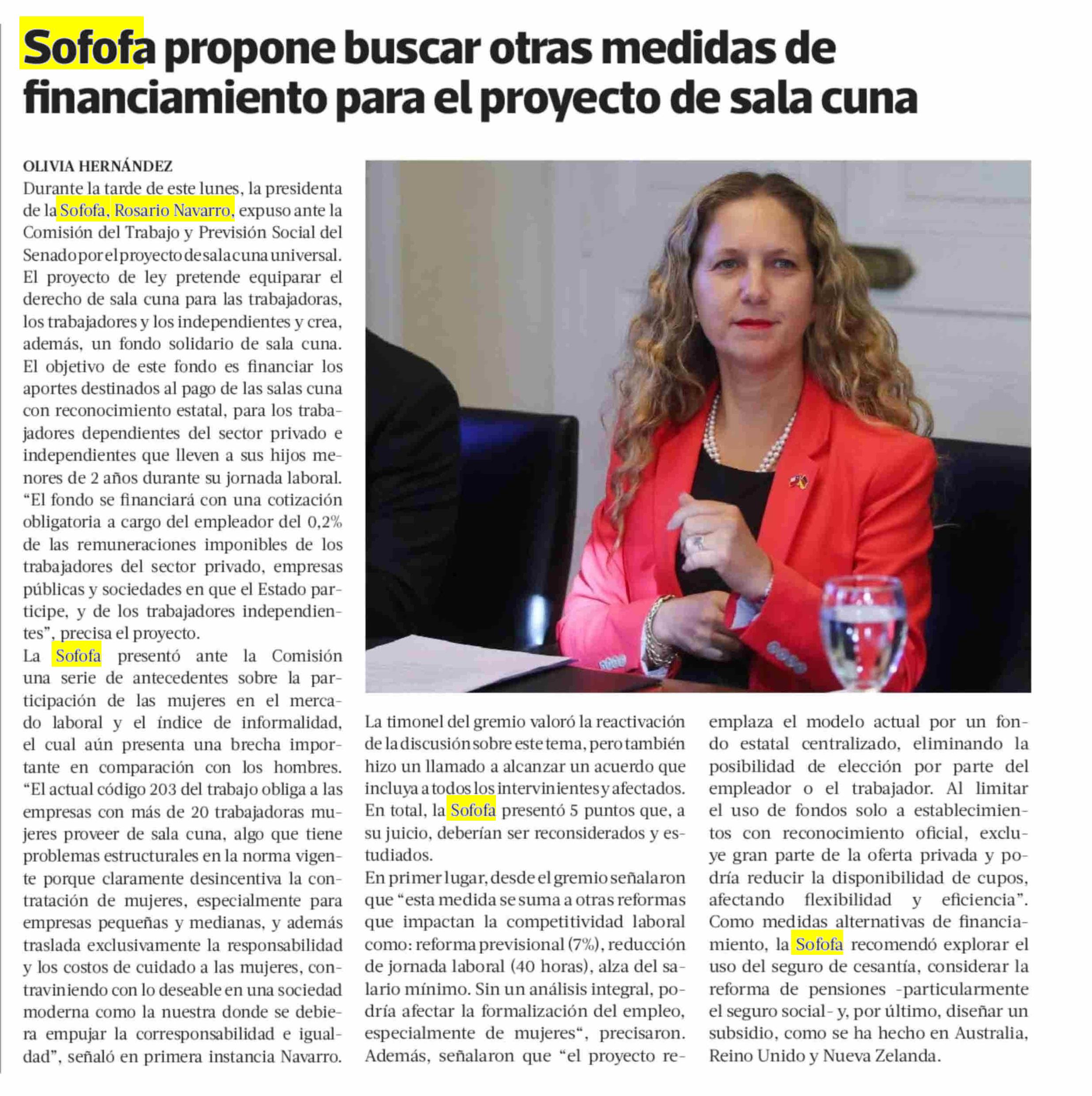 Sofofa propone buscar otras medidas de financiamiento para el proyecto de sala cuna