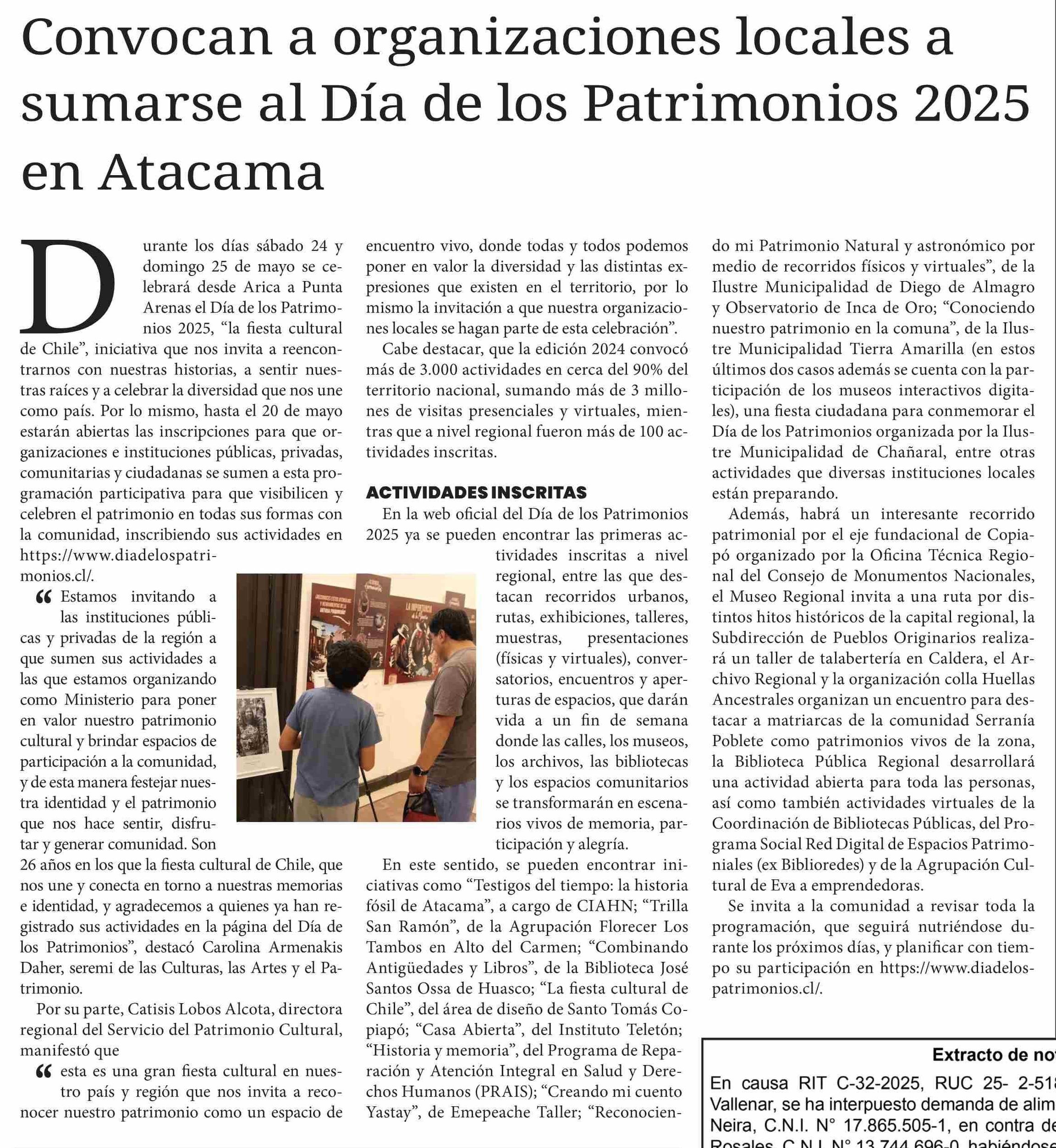 Convocan a organizaciones locales a sumarse al Día de los Patrimonios 2025