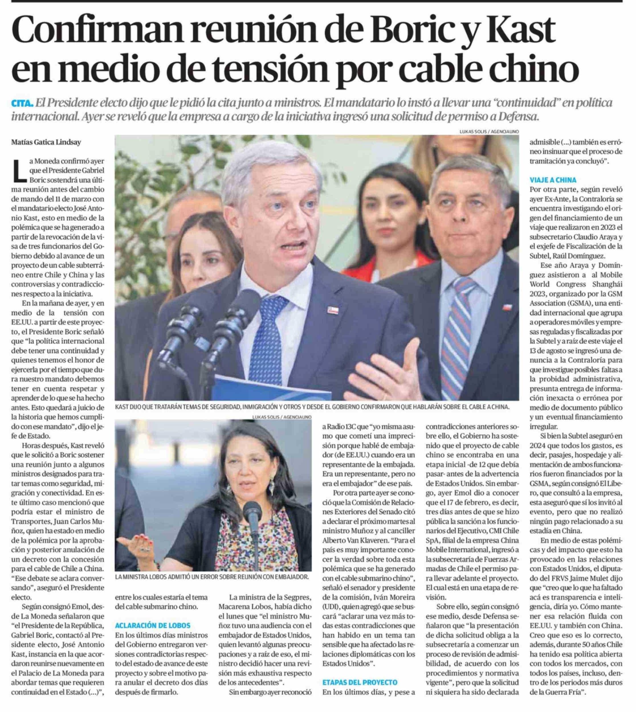 Confirman reunión de Boric y Kast en medio de tensión por cable chino