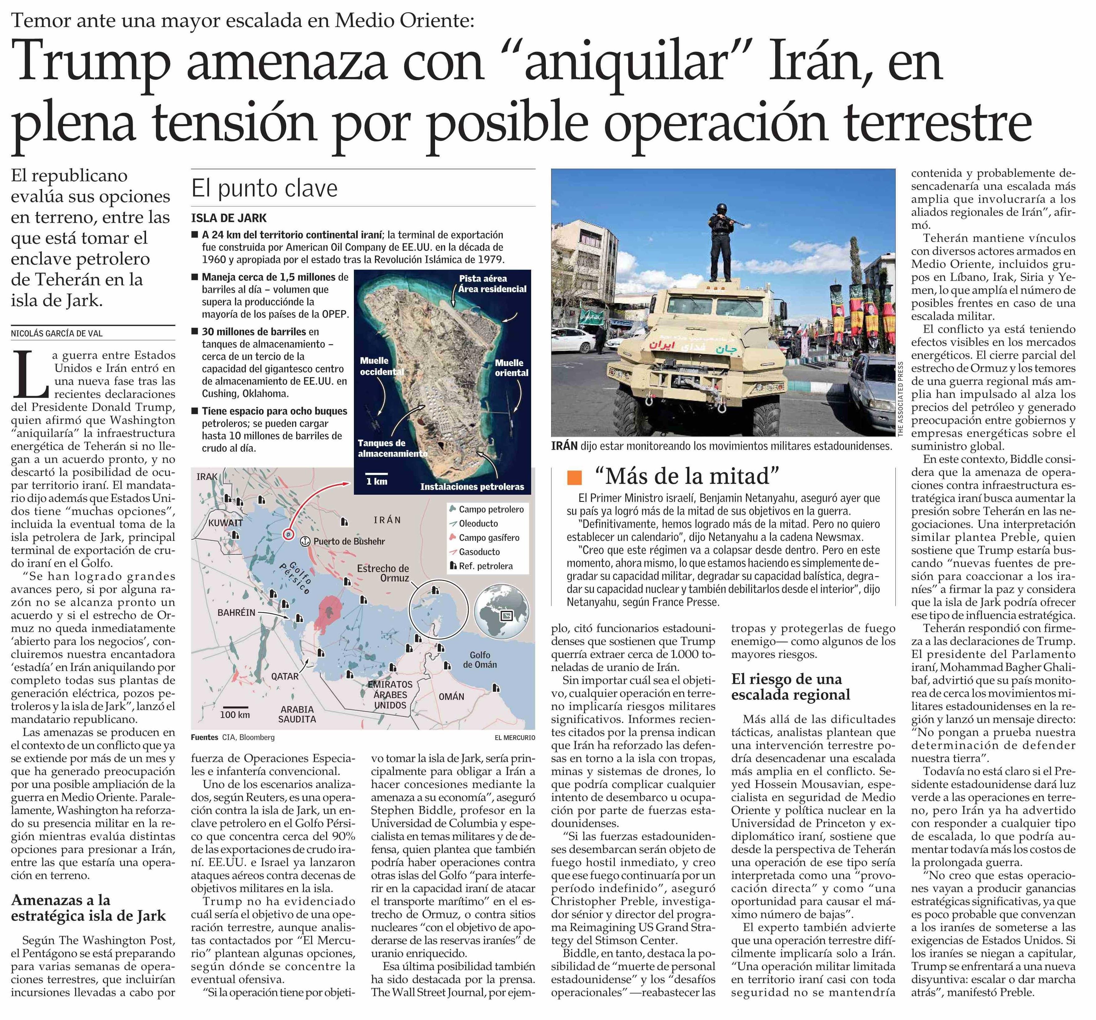 Trump amenaza con “aniquilar” Irán, en plena tensión por posible operación terrestre
