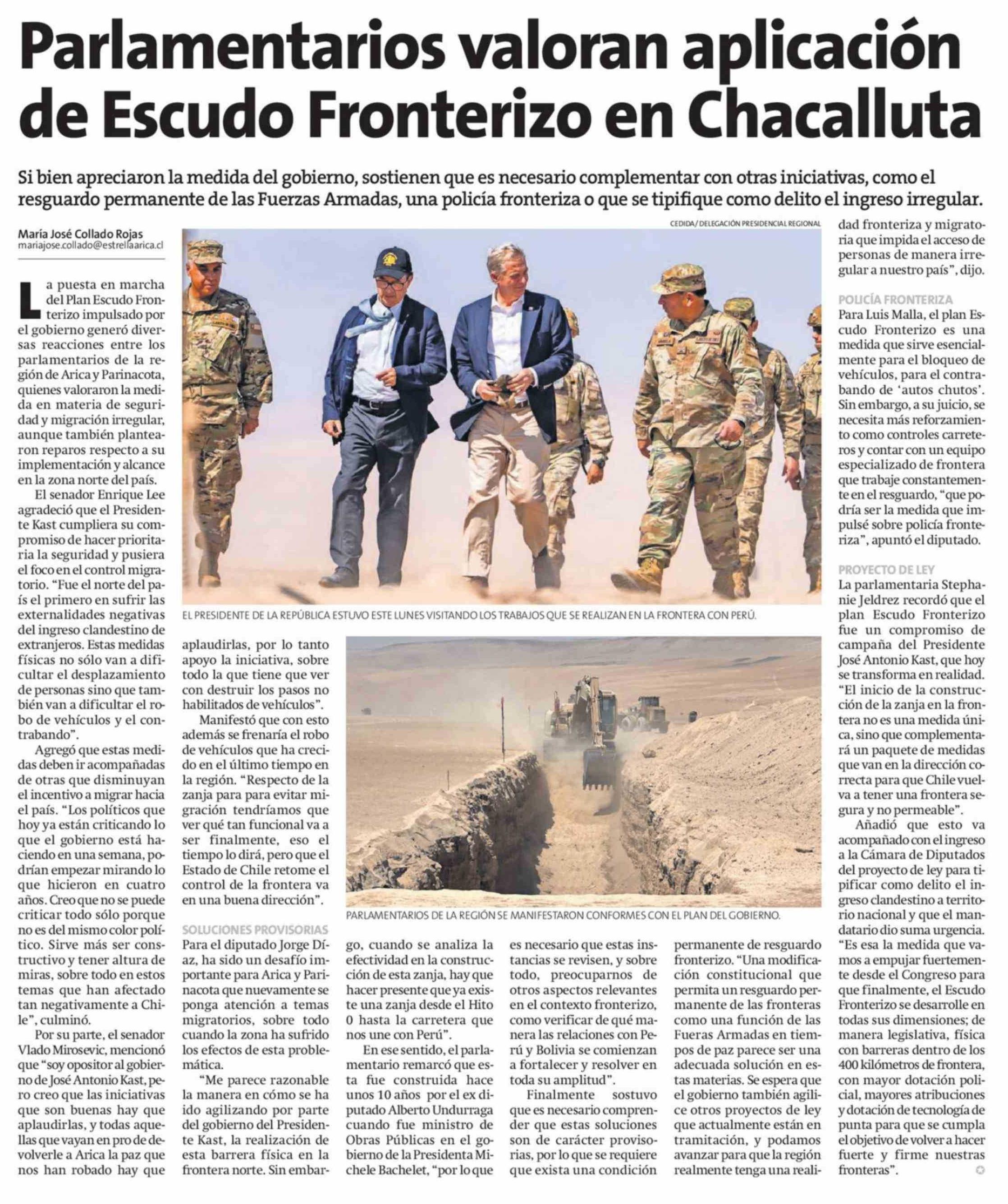 Parlamentarios valoran aplicación de Escudo Fronterizo en Chacalluta