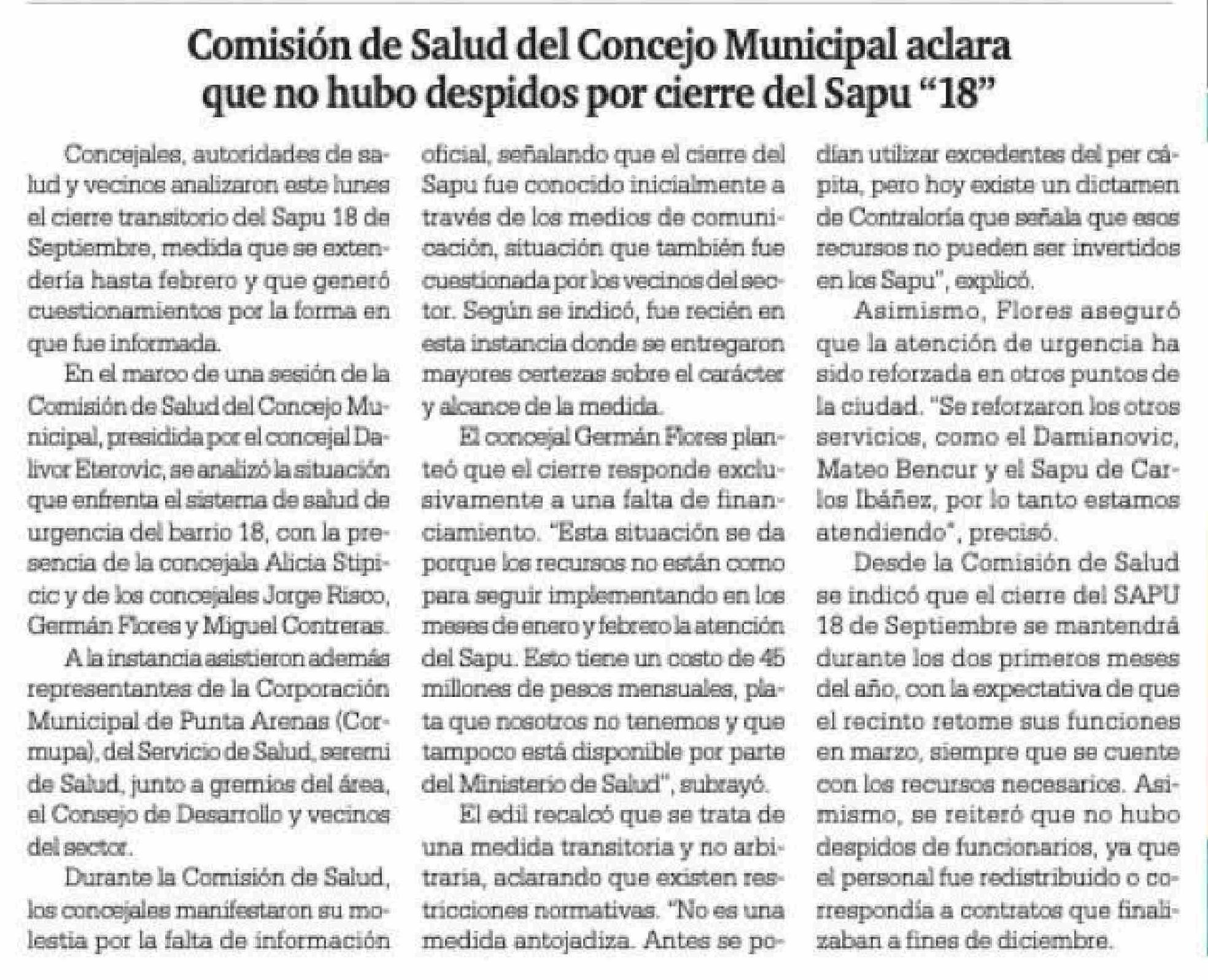 Comisión de Salud del Concejo Municipal aclara que no hubo despidos por cierre del Sapu "18"