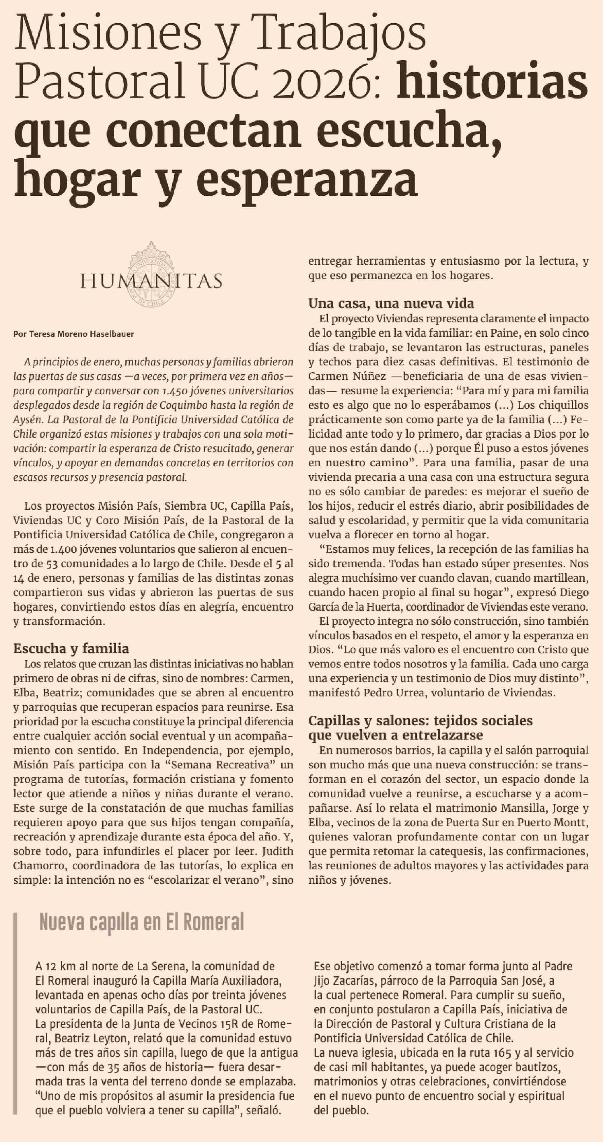 Misiones y Trabajos Pastoral UC 2026: historias que conectan escucha, hogar y esperanza