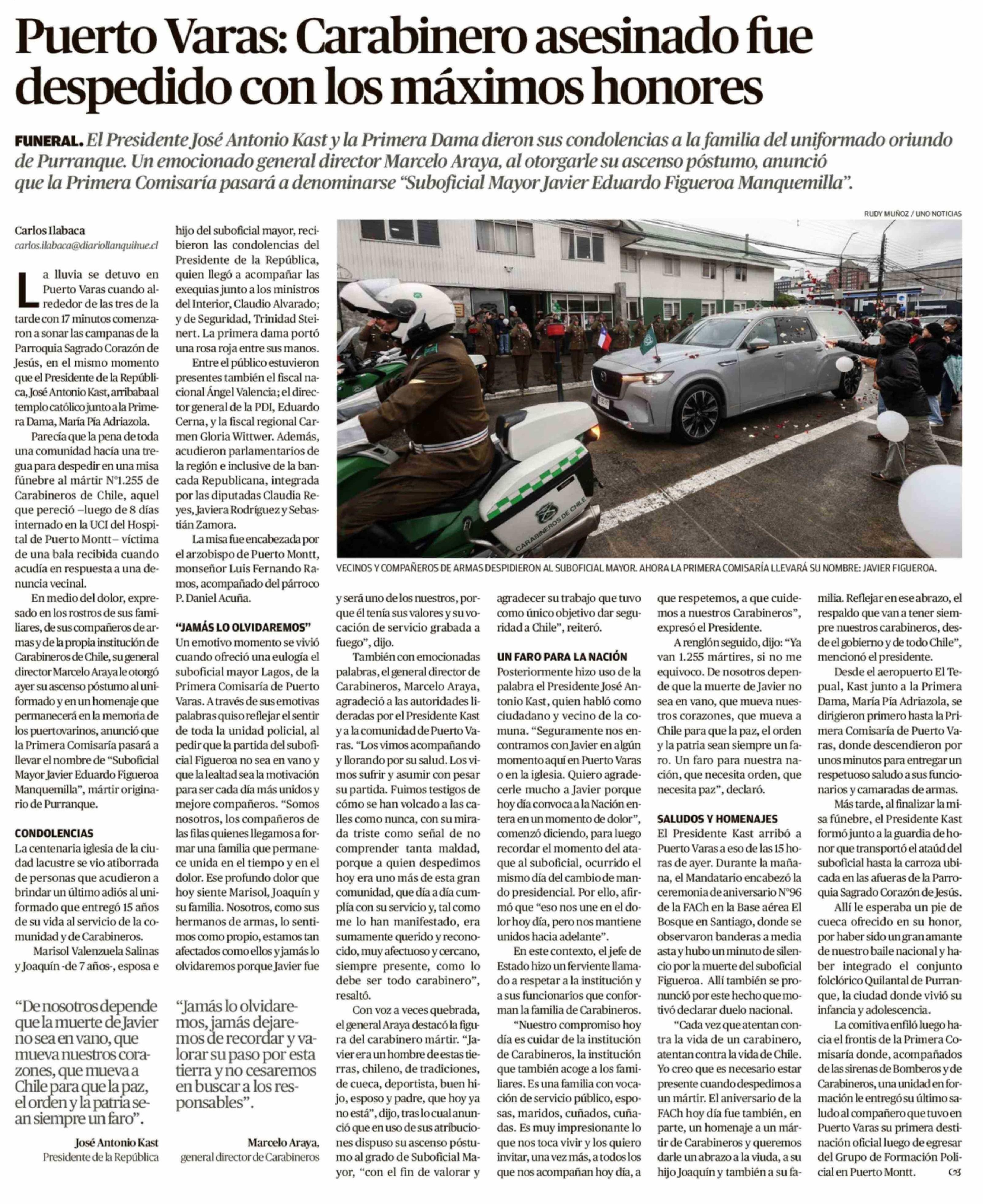 Puerto Varas: Carabinero asesinado fue despedido con los máximos honores