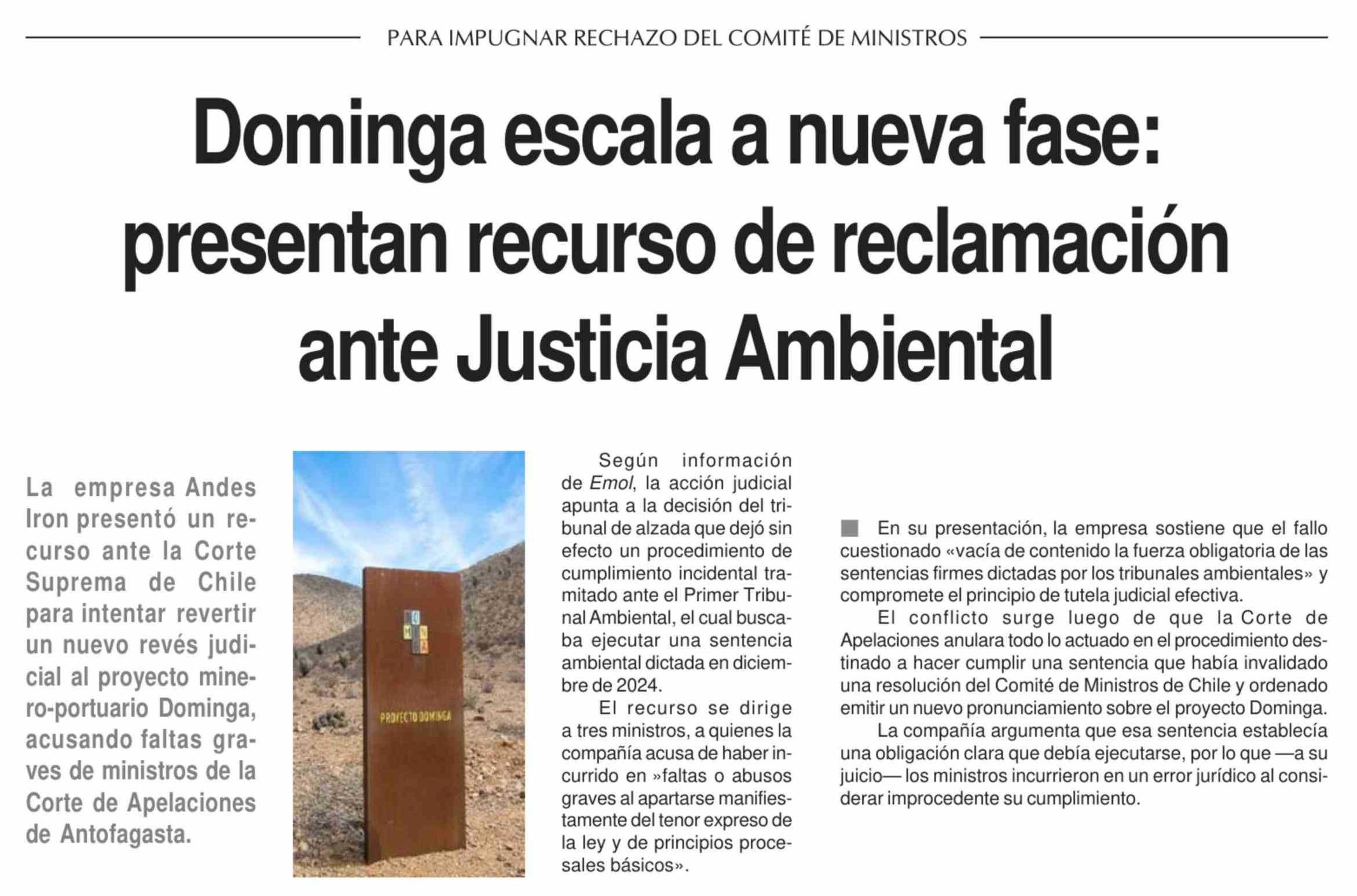 Dominga escala a nueva fase: presentan recurso de reclamación ante Justicia Ambiental