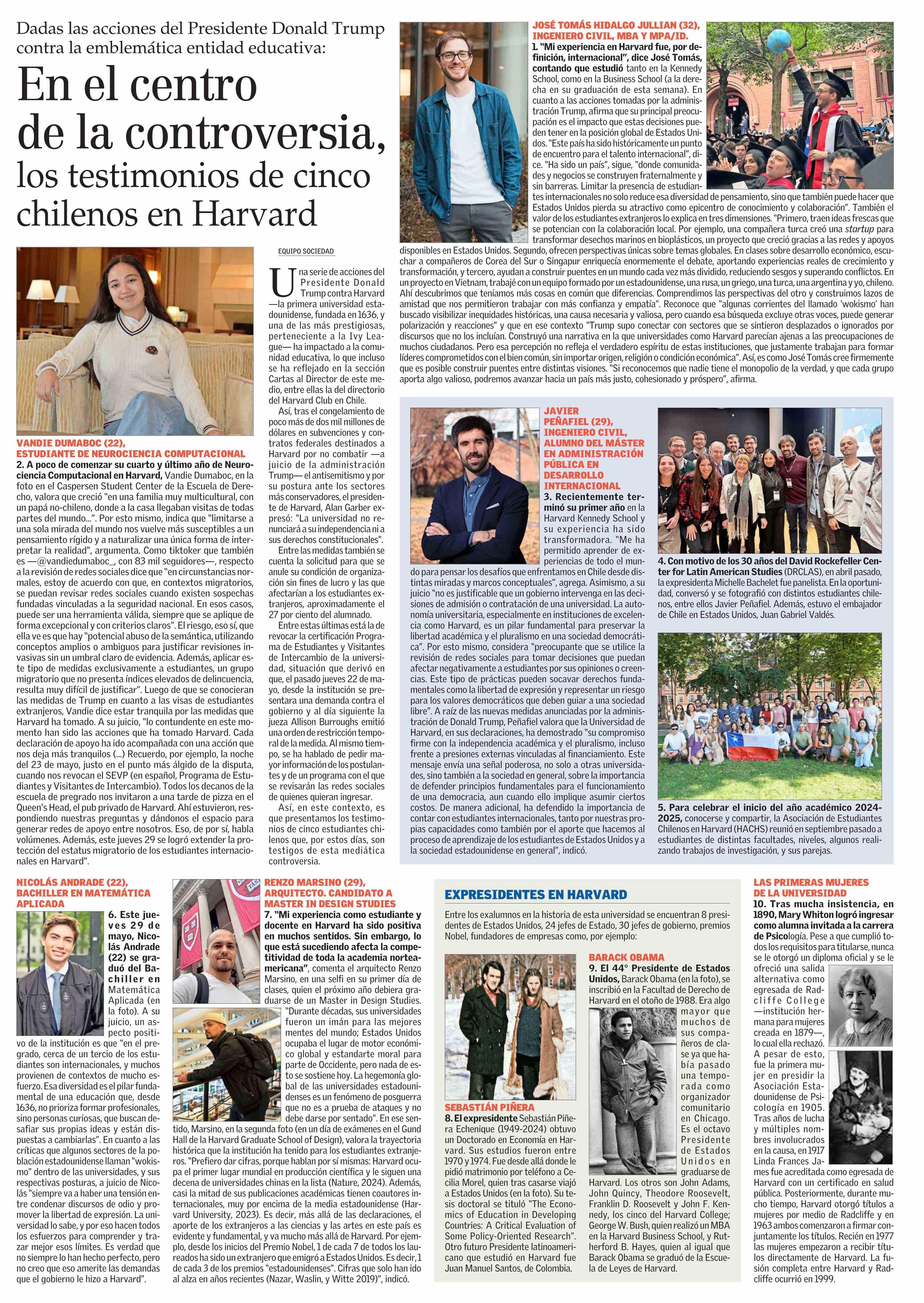 En el centro de la controversia los testimonios de cinco chilenos en Harvard