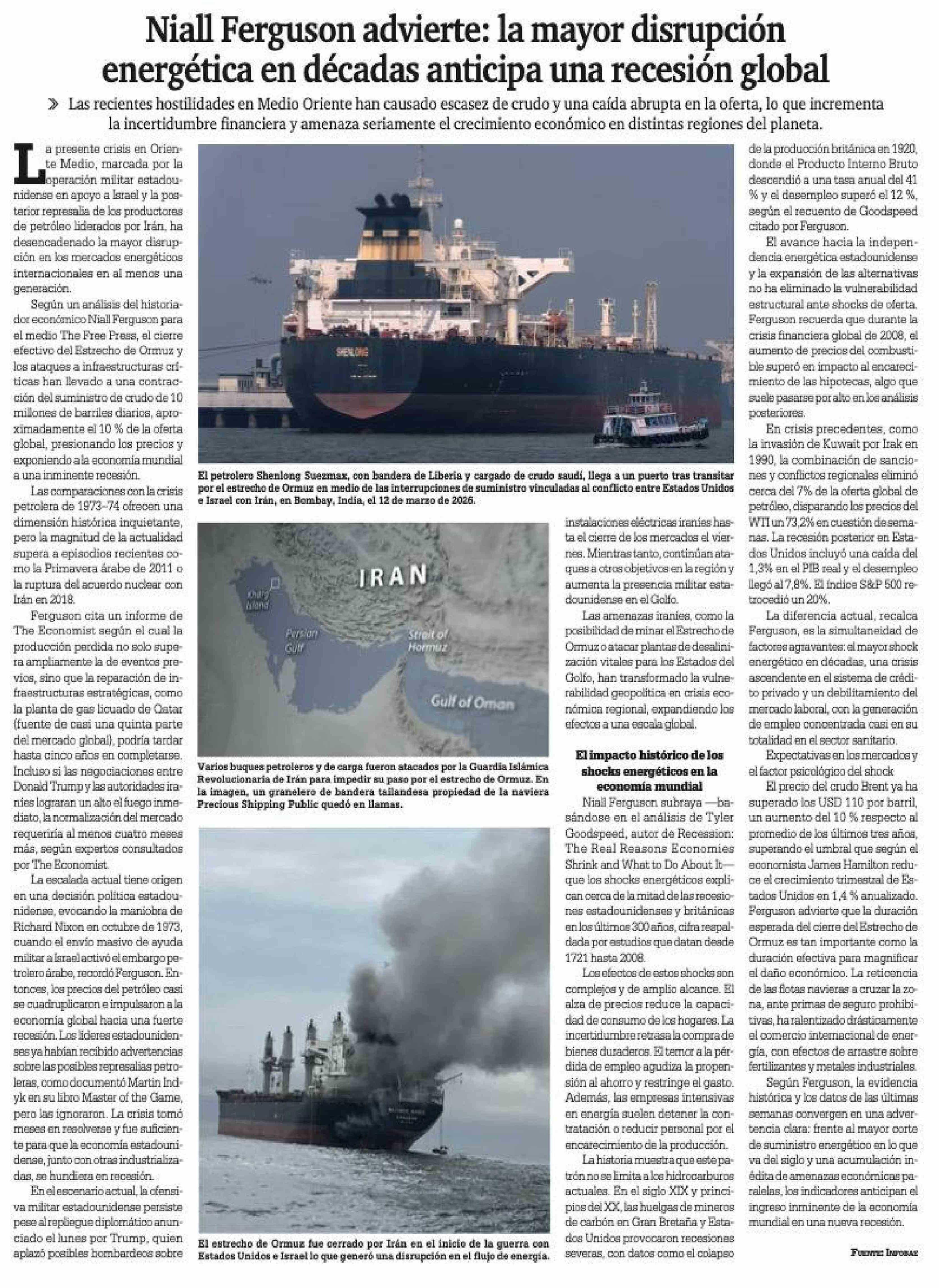 Niall Ferguson advierte: la mayor disrupción energética en décadas anticipa una recesión global