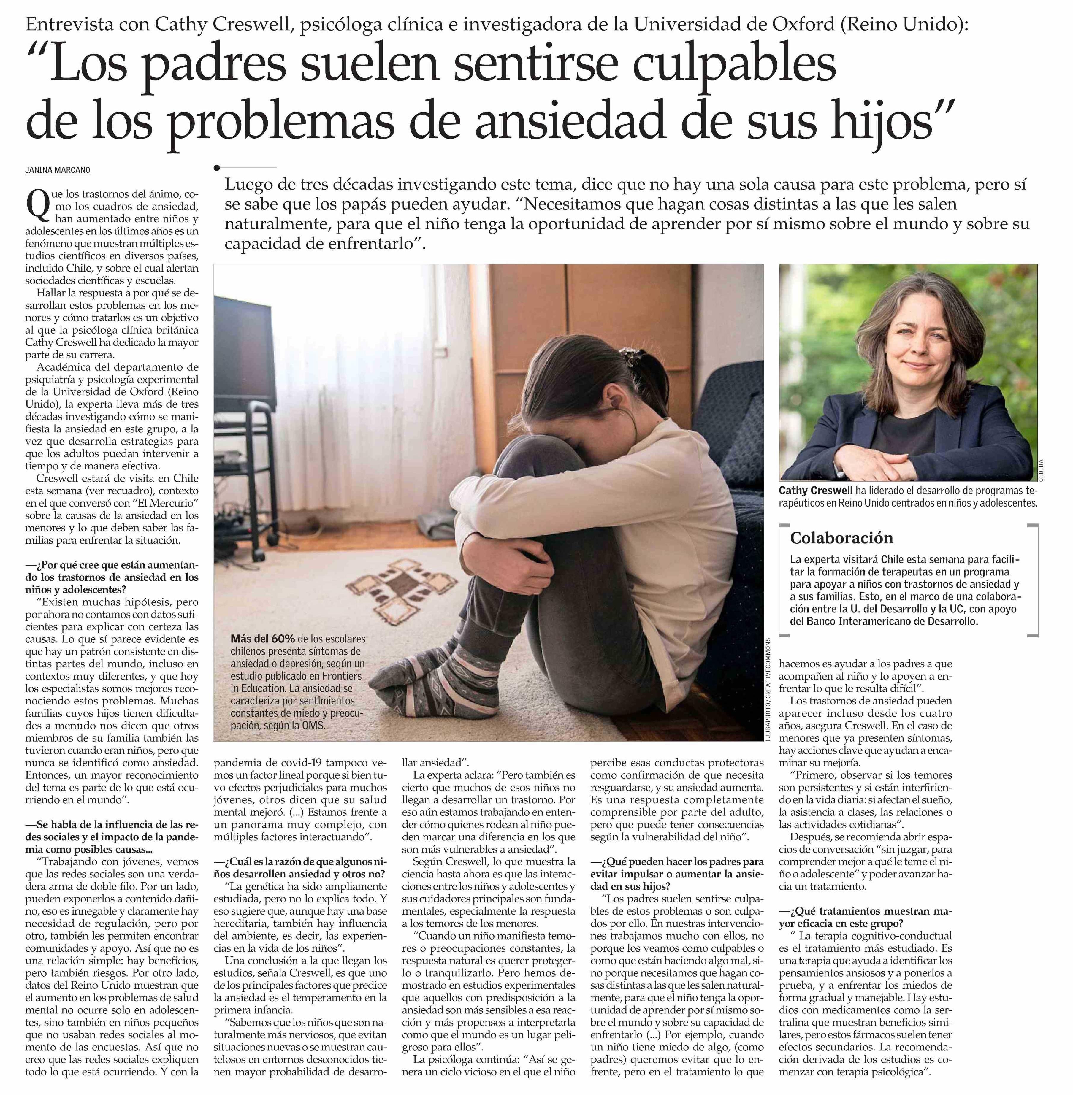 "Los padres suelen sentirse culpables de los problemas de ansiedad de sus hijos"
