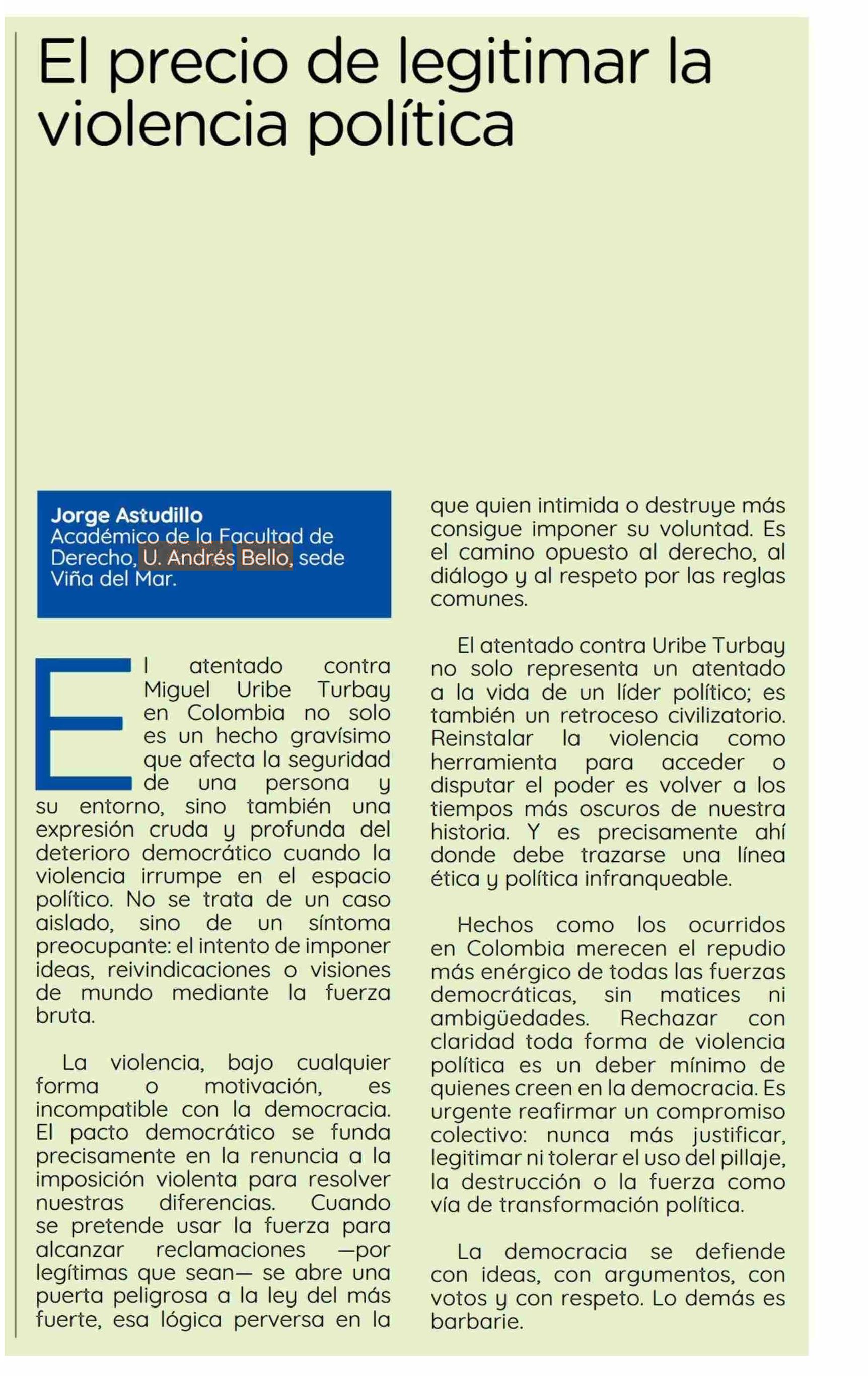 COLUMNAS DE OPINIÓN: El precio de legitimar la violencia política