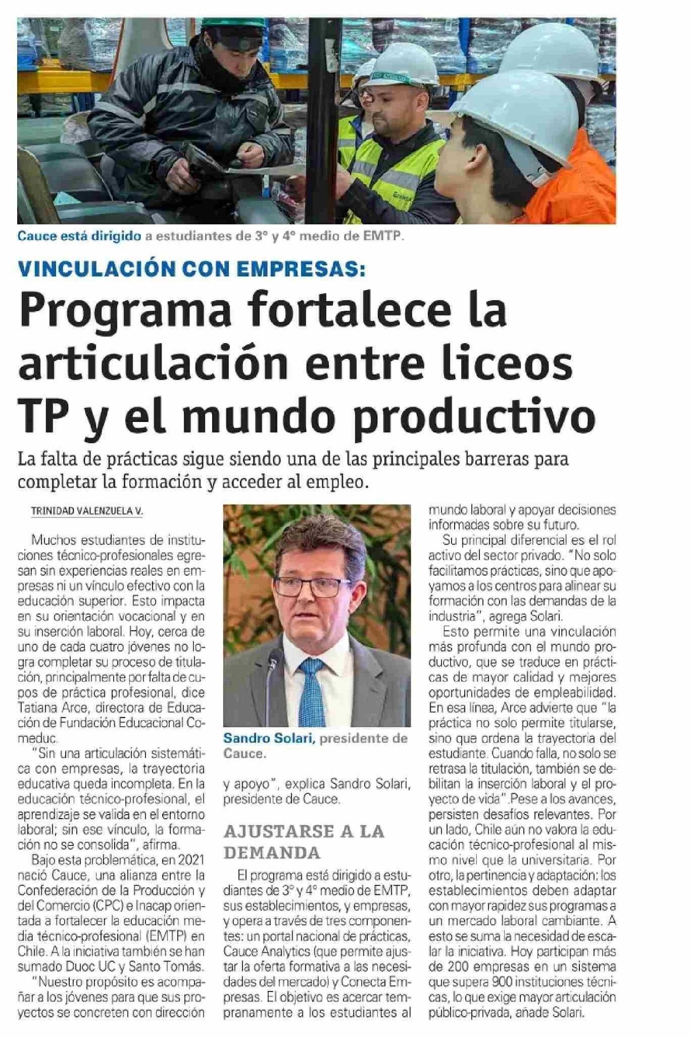 Programa fortalece la articulación entre liceos TP y el mundo productivo