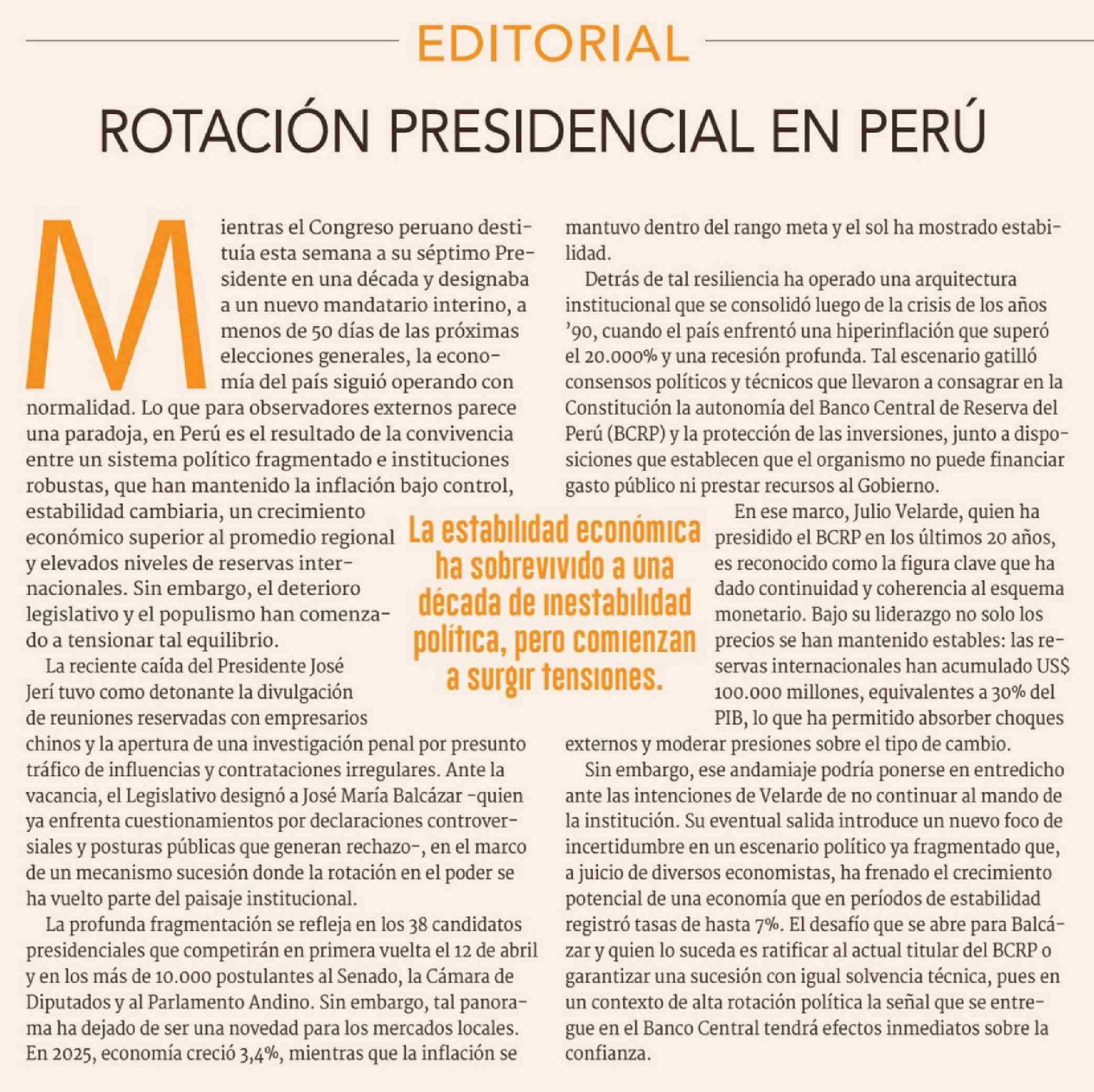 Editorial: ROTACIÓN PRESIDENCIAL EN PERÚ