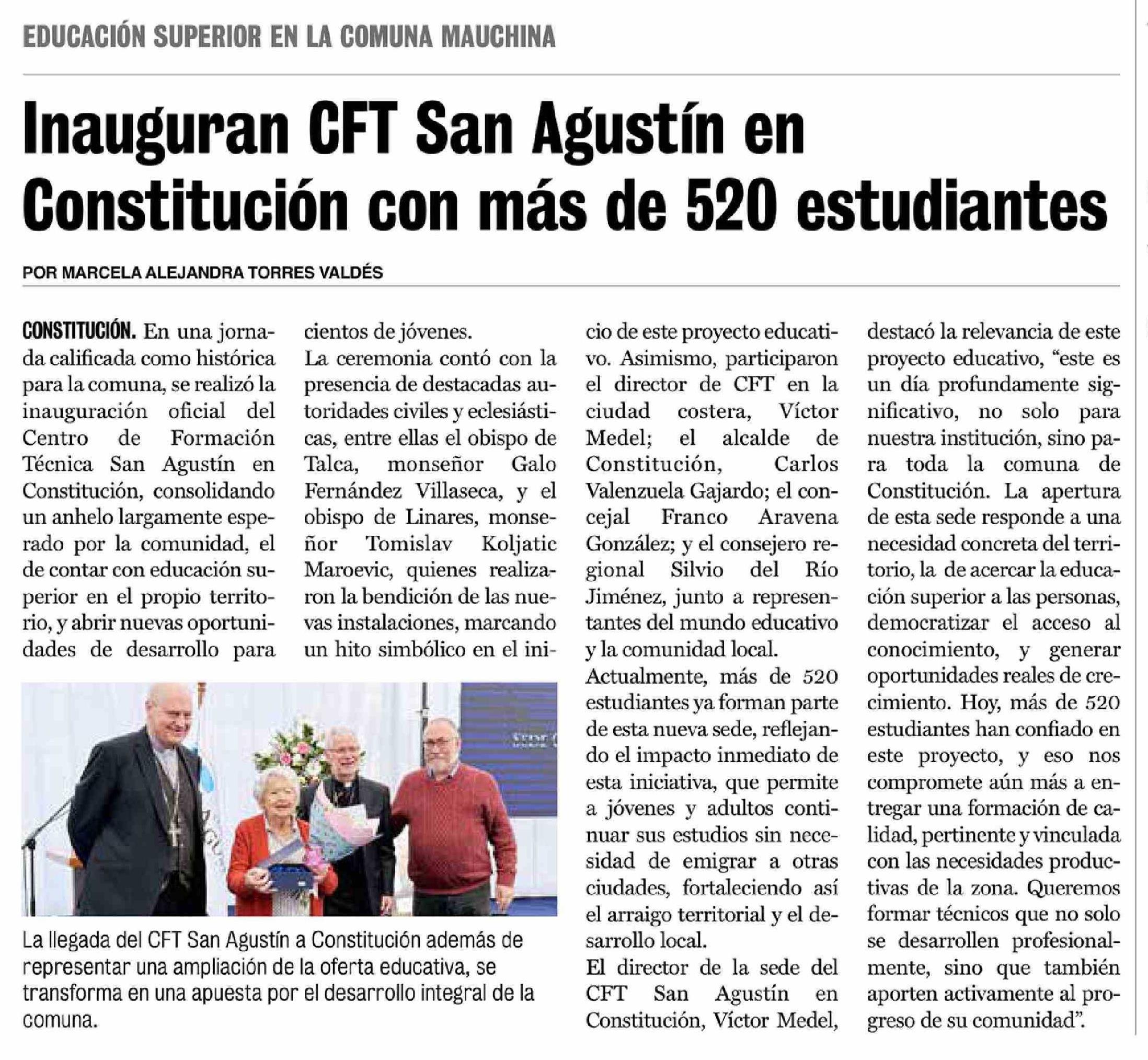 Inauguran CFT San Agustín en Constitución con más de 520 estudiantes