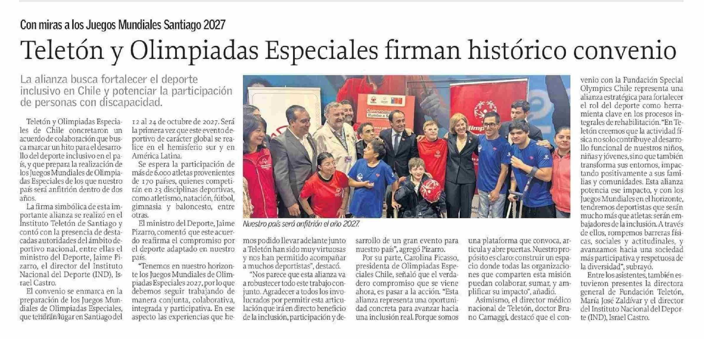 Teletón y Olimpiadas Especiales firman histórico convenio