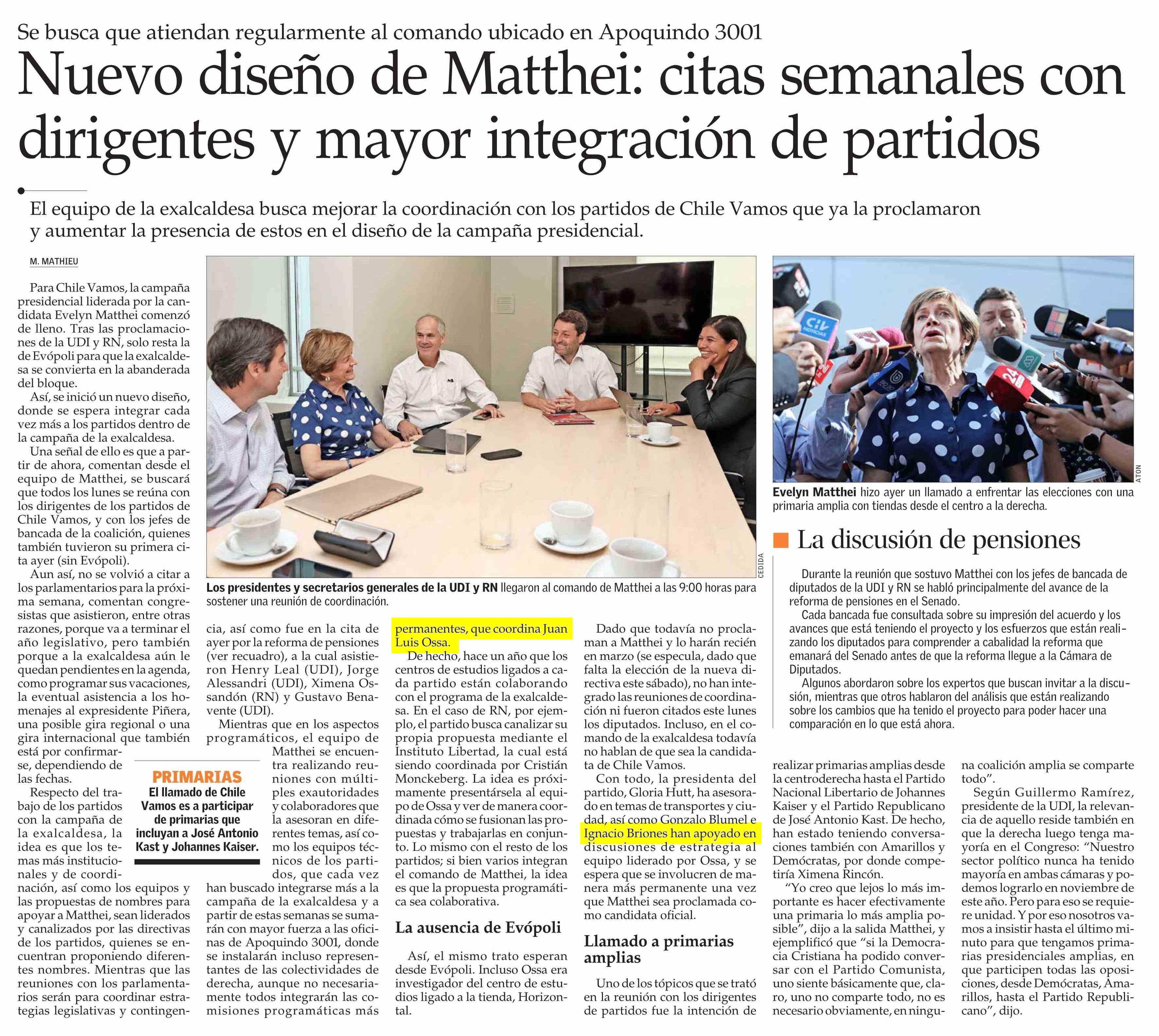 Nuevo diseño de Matthei: citas semanales con dirigentes y mayor integración de partidos