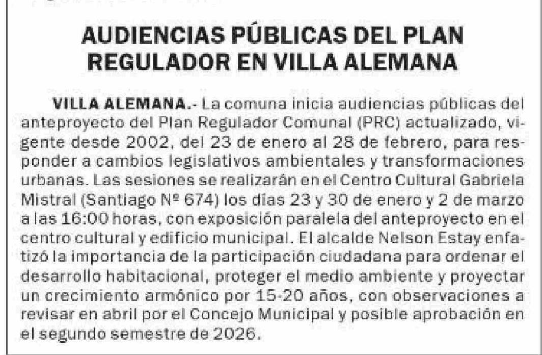 AUDIENCIAS PÚBLICAS DEL PLAN REGULADOR EN VILLA ALEMANA