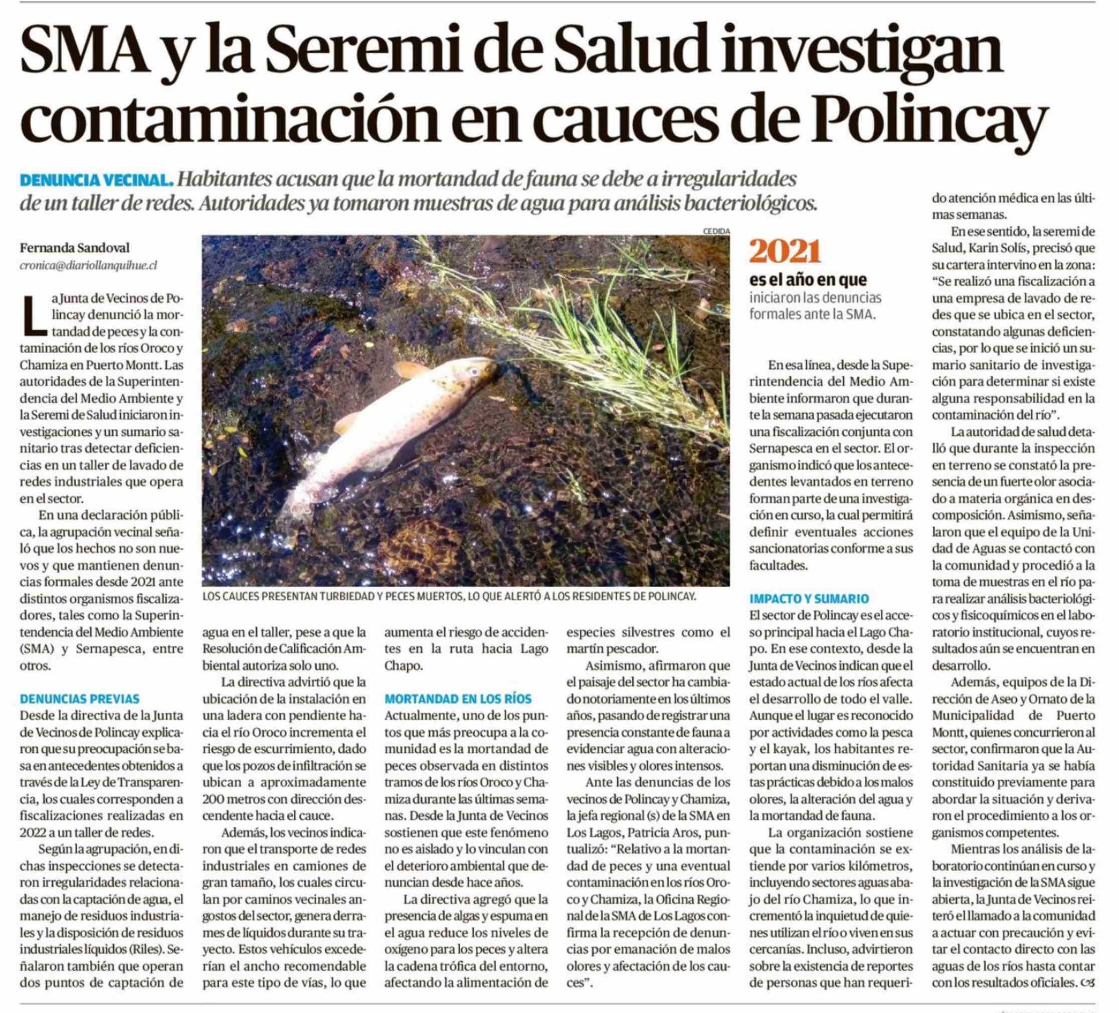 SMA y la Seremi de Salud investigan contaminación en cauces de Polincay