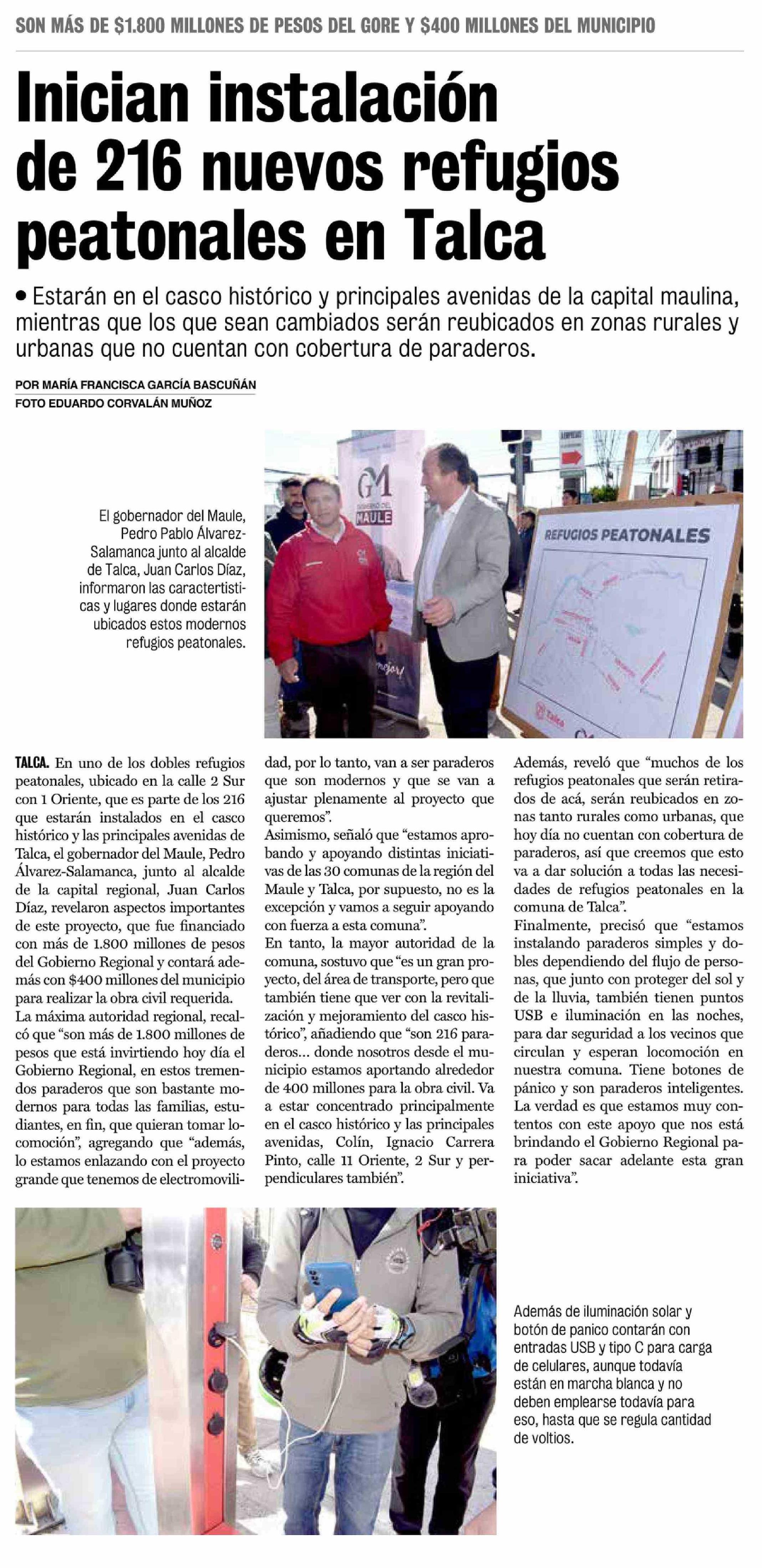 Inician instalación de 216 nuevos refugios peatonales en Talca